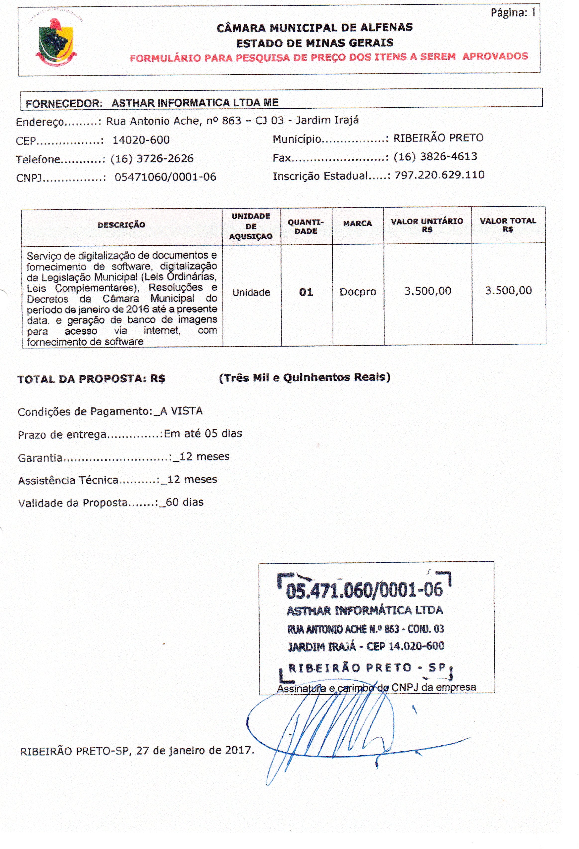 Data de abertura: 25/01/2017 | Número do Processo: 10/2017