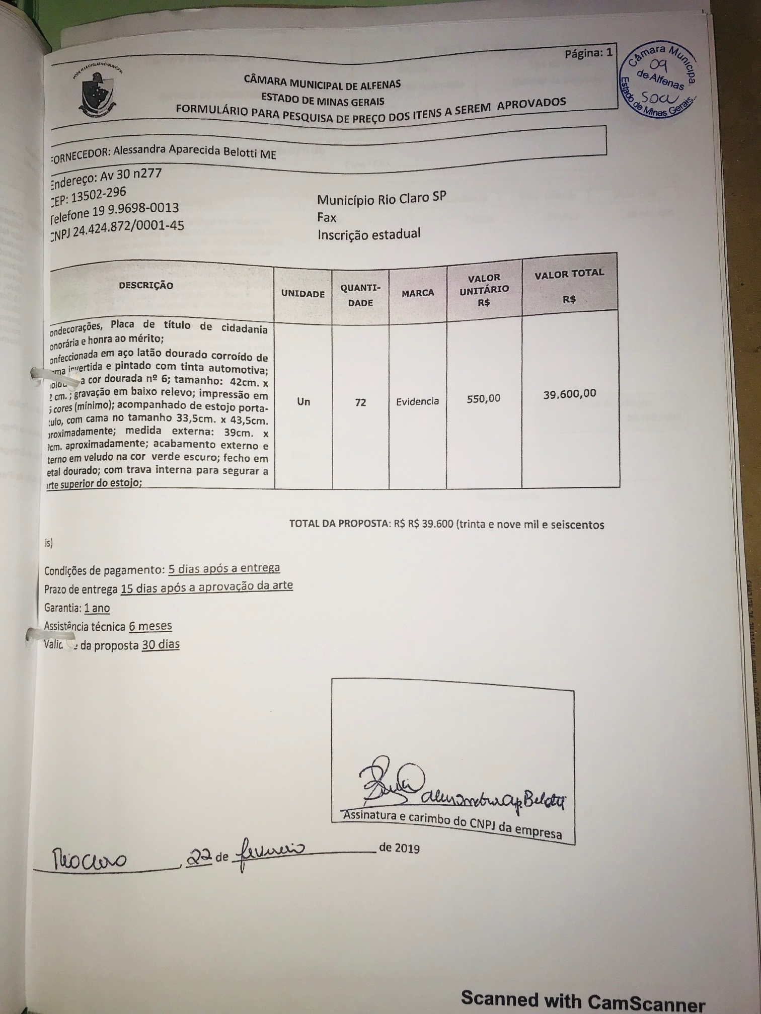 Data de abertura: 15/03/2019 | Número do Processo: 08/2019