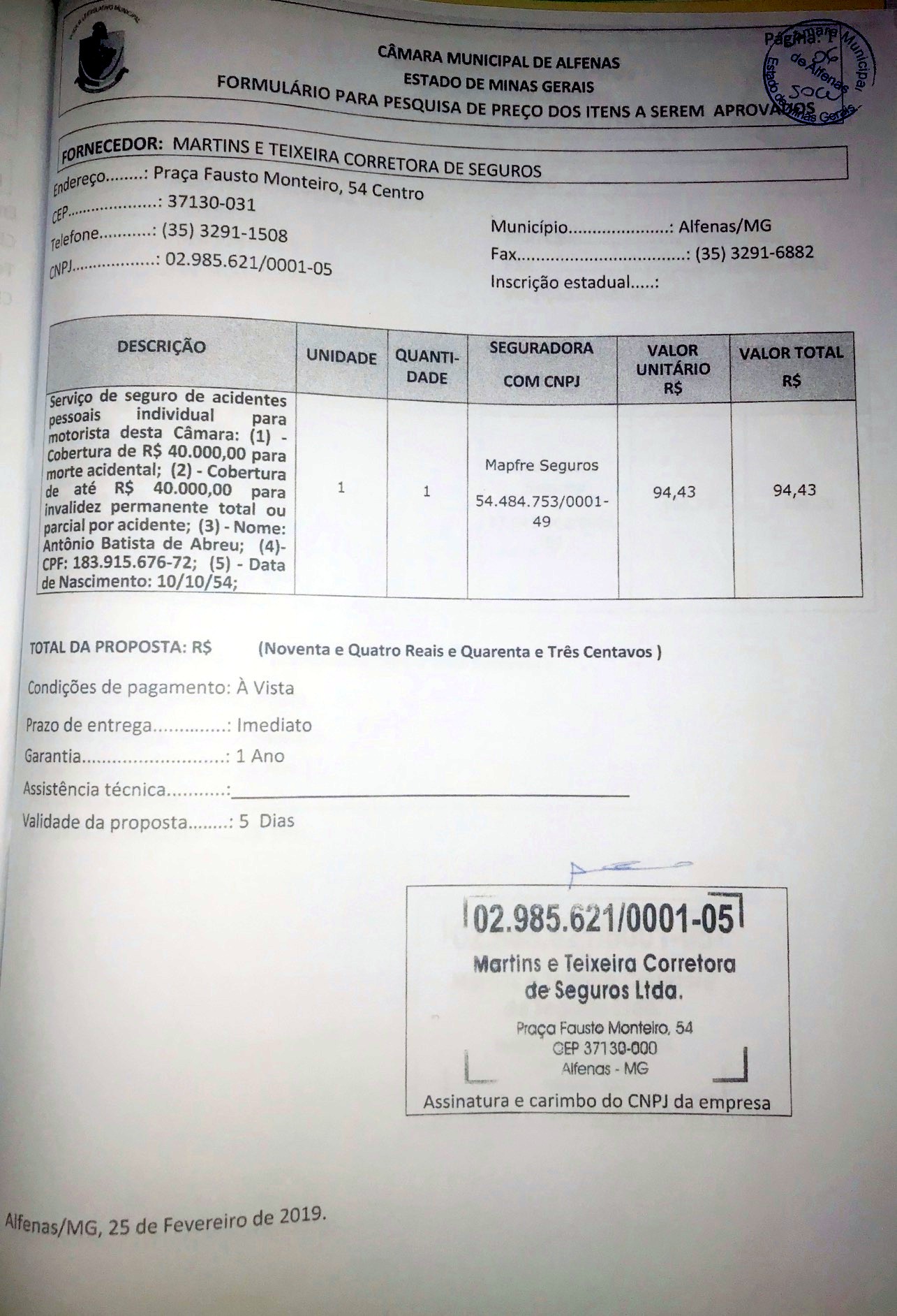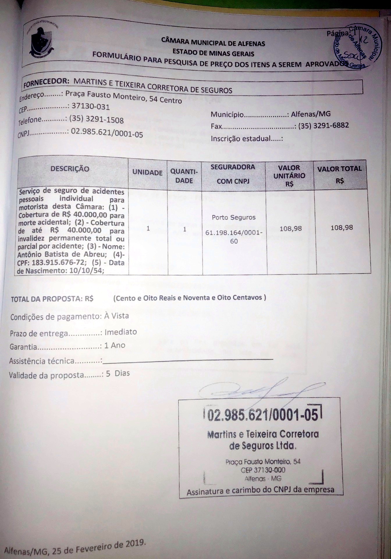 Seguro de acidentes pessoais para o encarregado de transportes Antônio Batista de Abreu