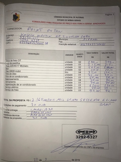 Revisão de 190.000 km do veículo Honda Civic da Câmara Municipal