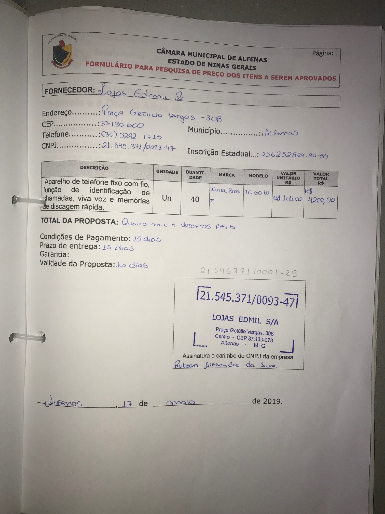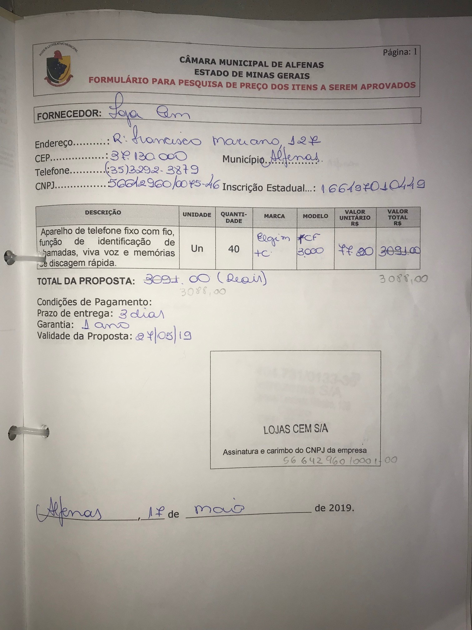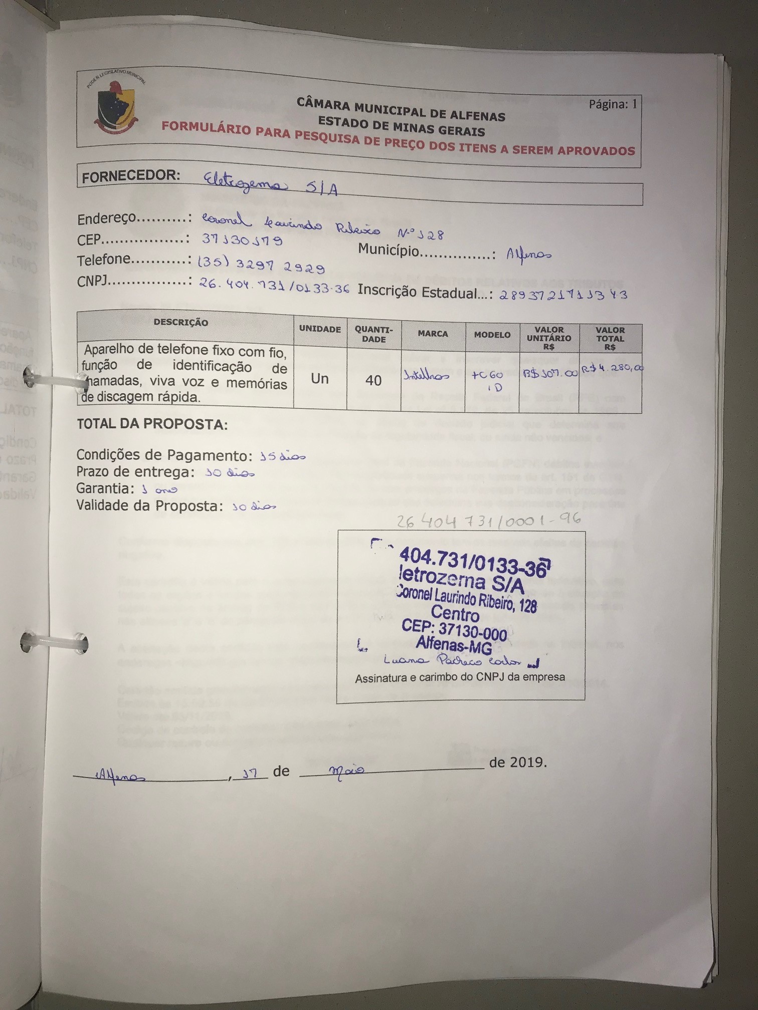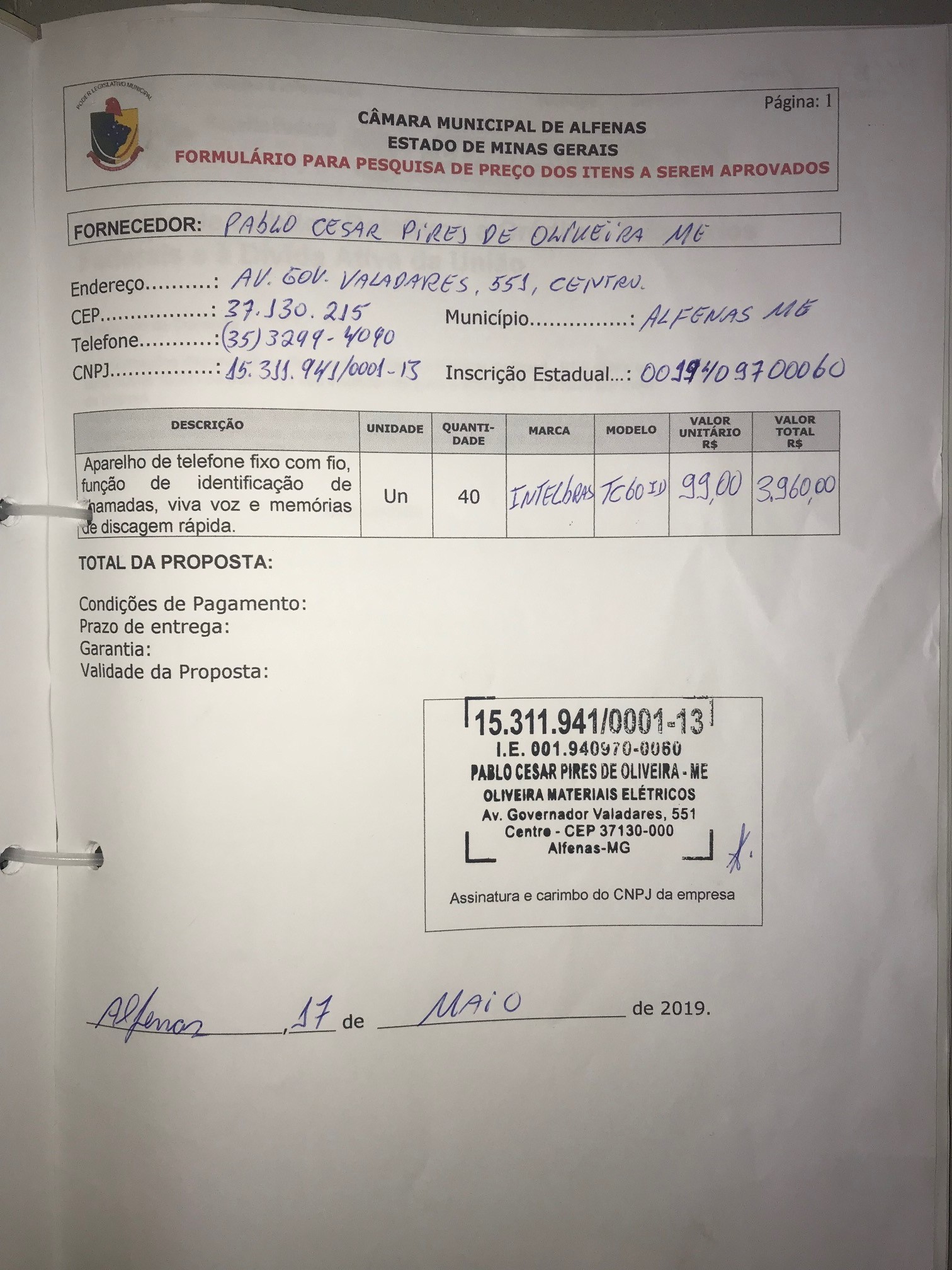Aquisição de 40 aparelhos de telefone fixo com fio