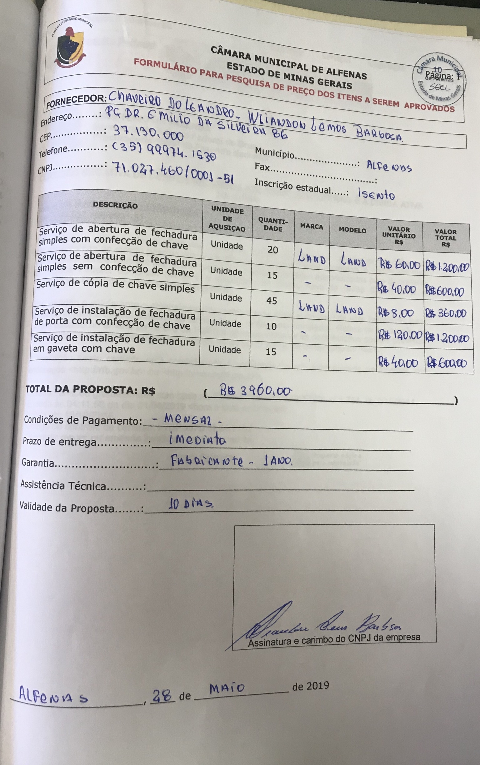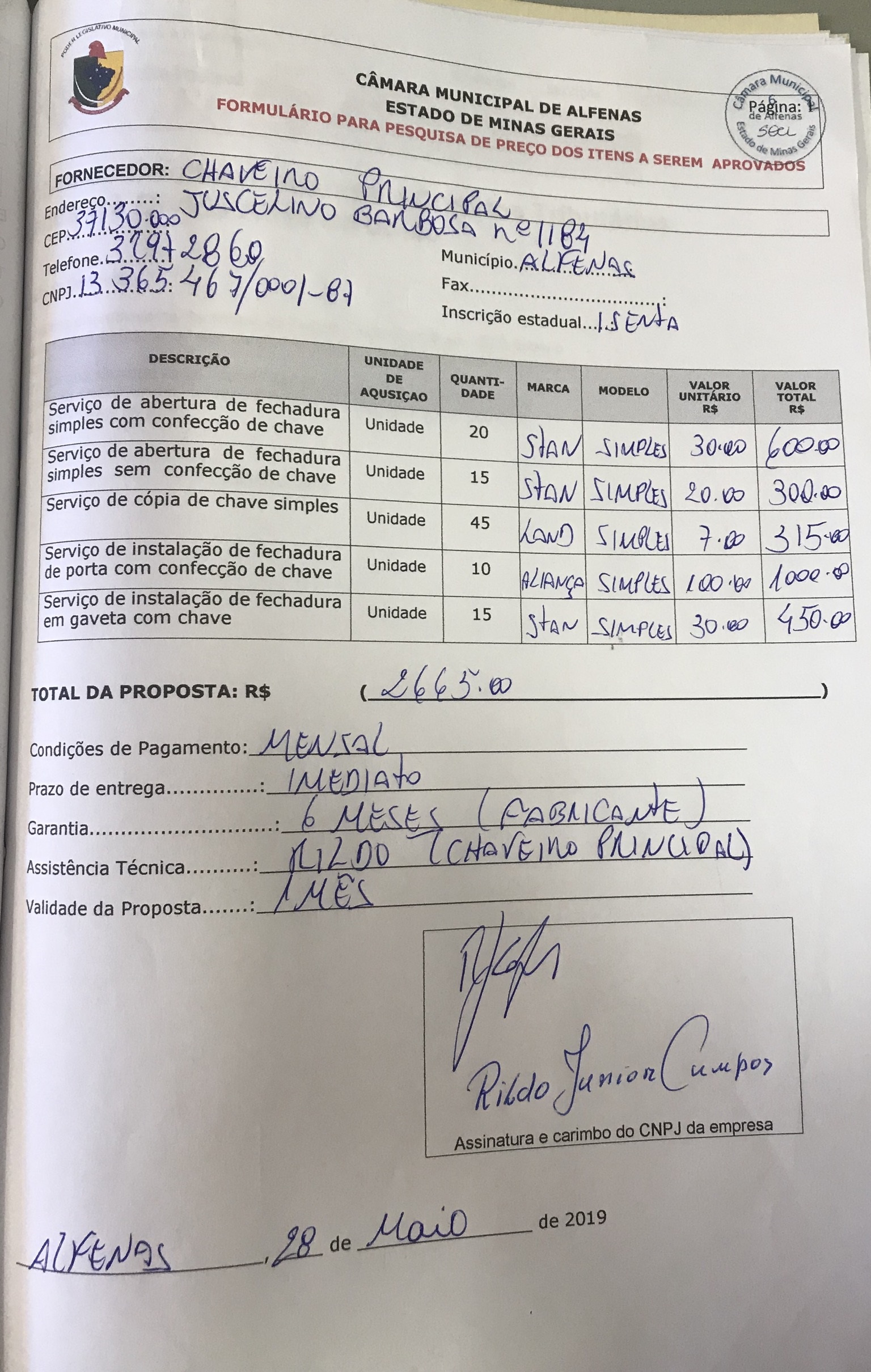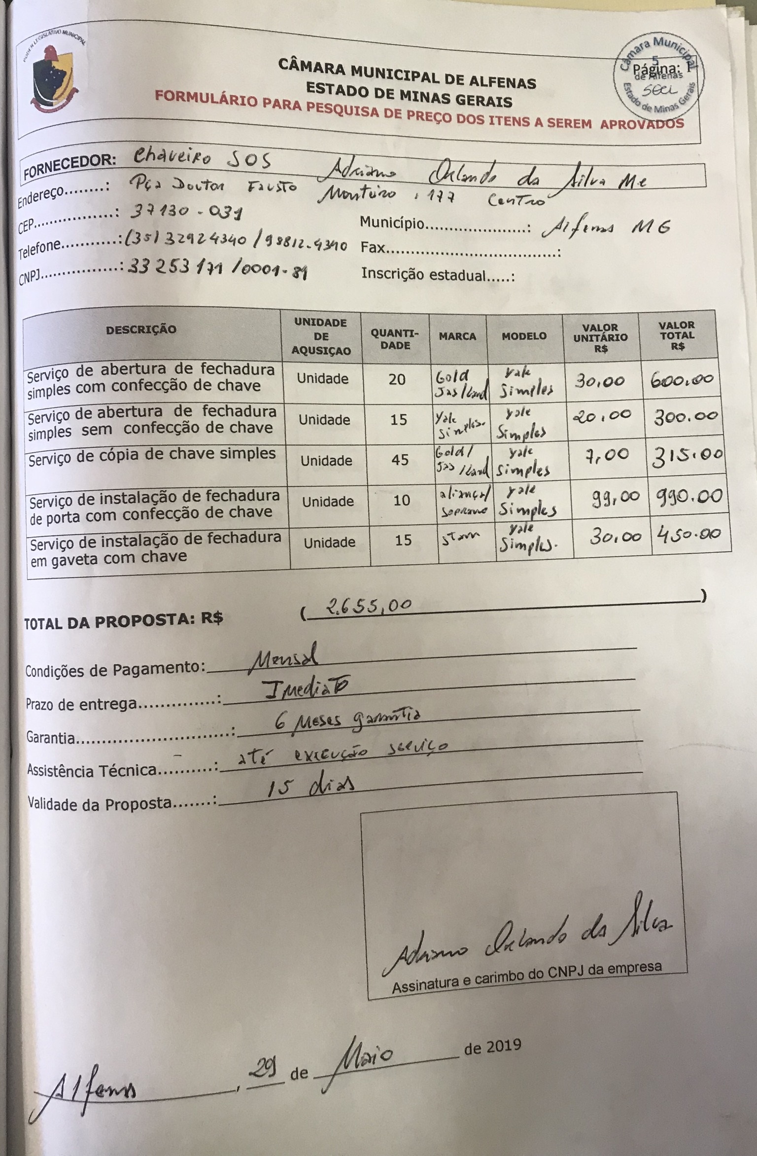 Objeto: Contratação de serviços de chaveiro para uso na Câmara Municipal