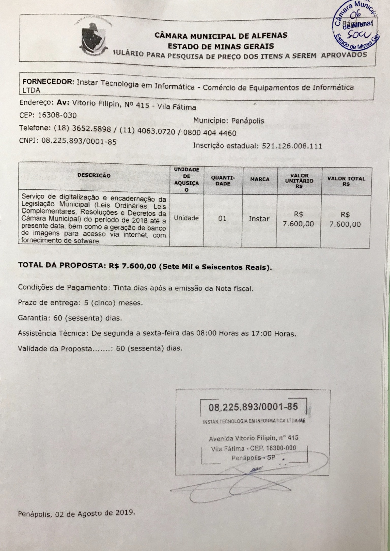 Serviço de digitalização e encadernação da Legislação Municipal (Leis Ordinárias, Leis Complementares, Resoluções e Decretos da Câmara Municipal) do período de 2018 até a presente data, bem como a geração de banco de imagens para acesso via internet, com fornecimento de software
