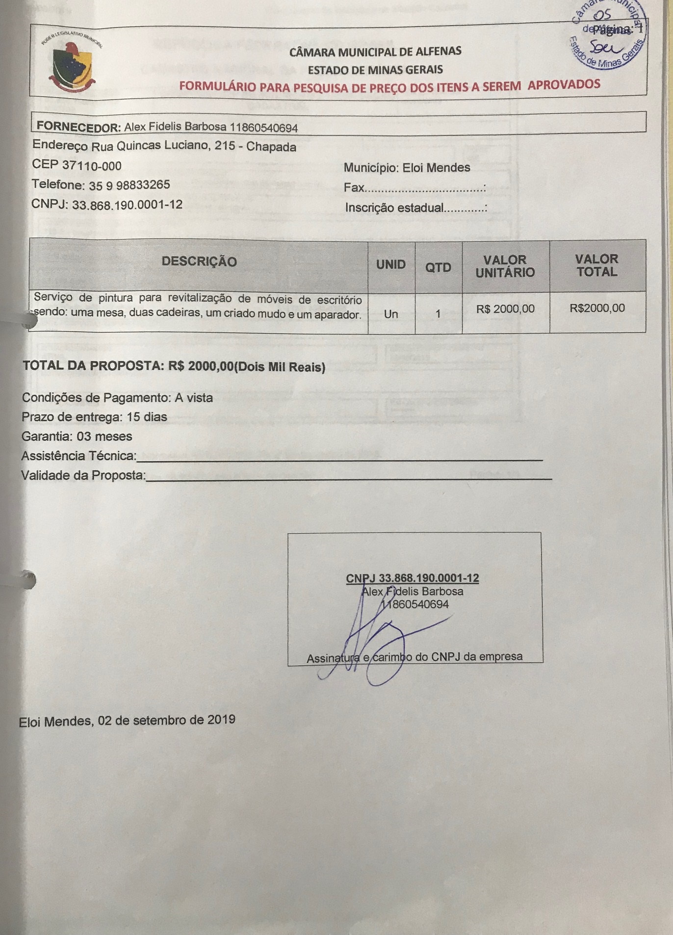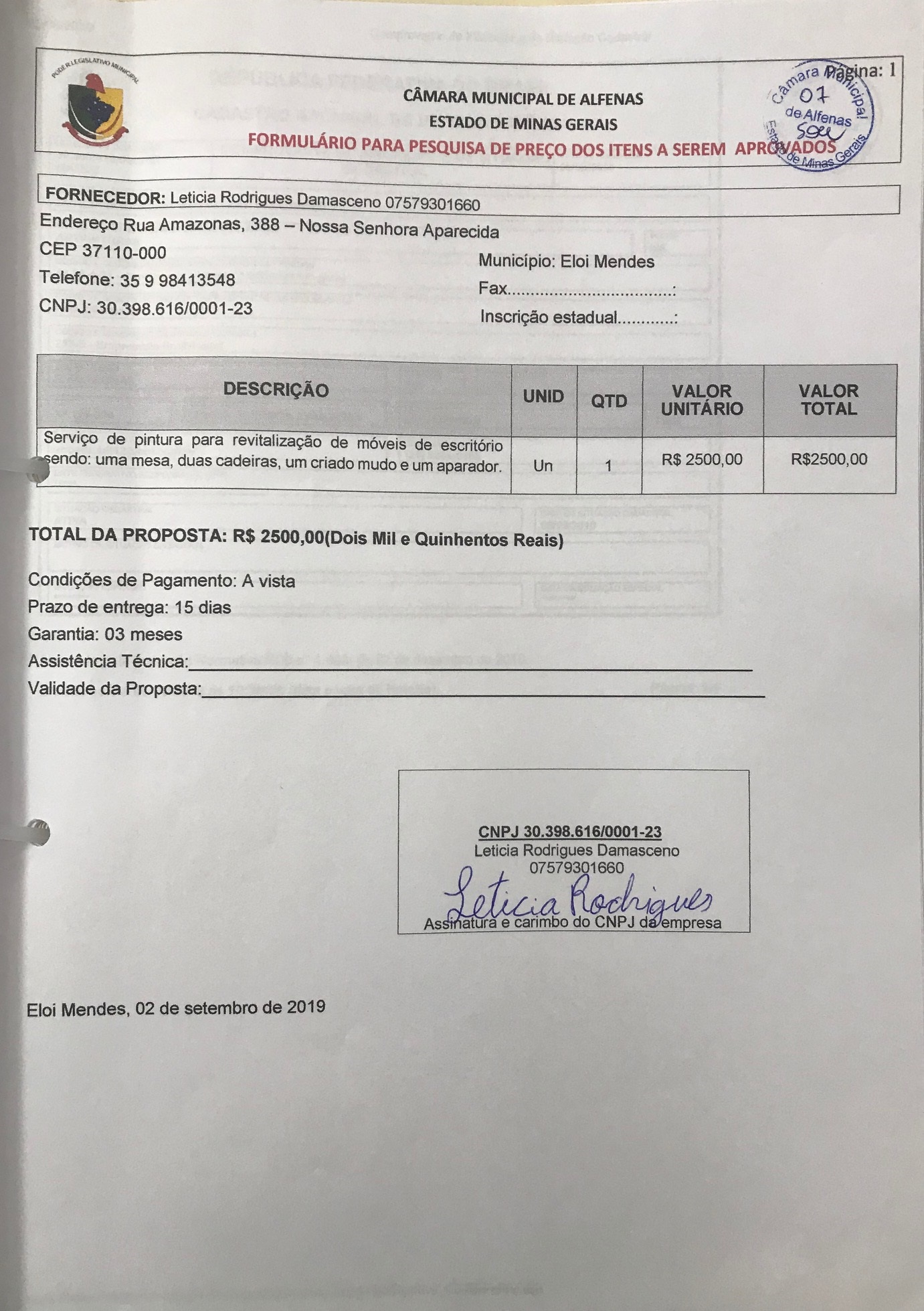 Data de abertura: 29/08/2019 | Número do Processo: 48/2019