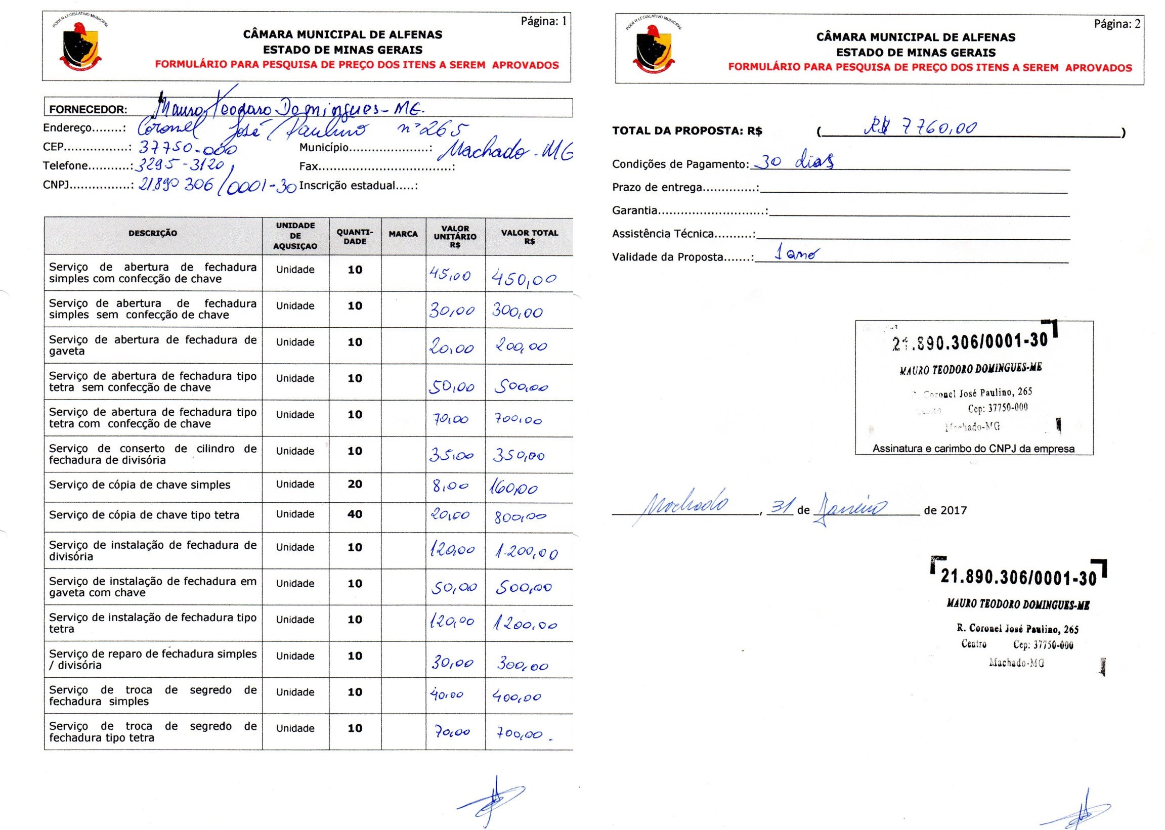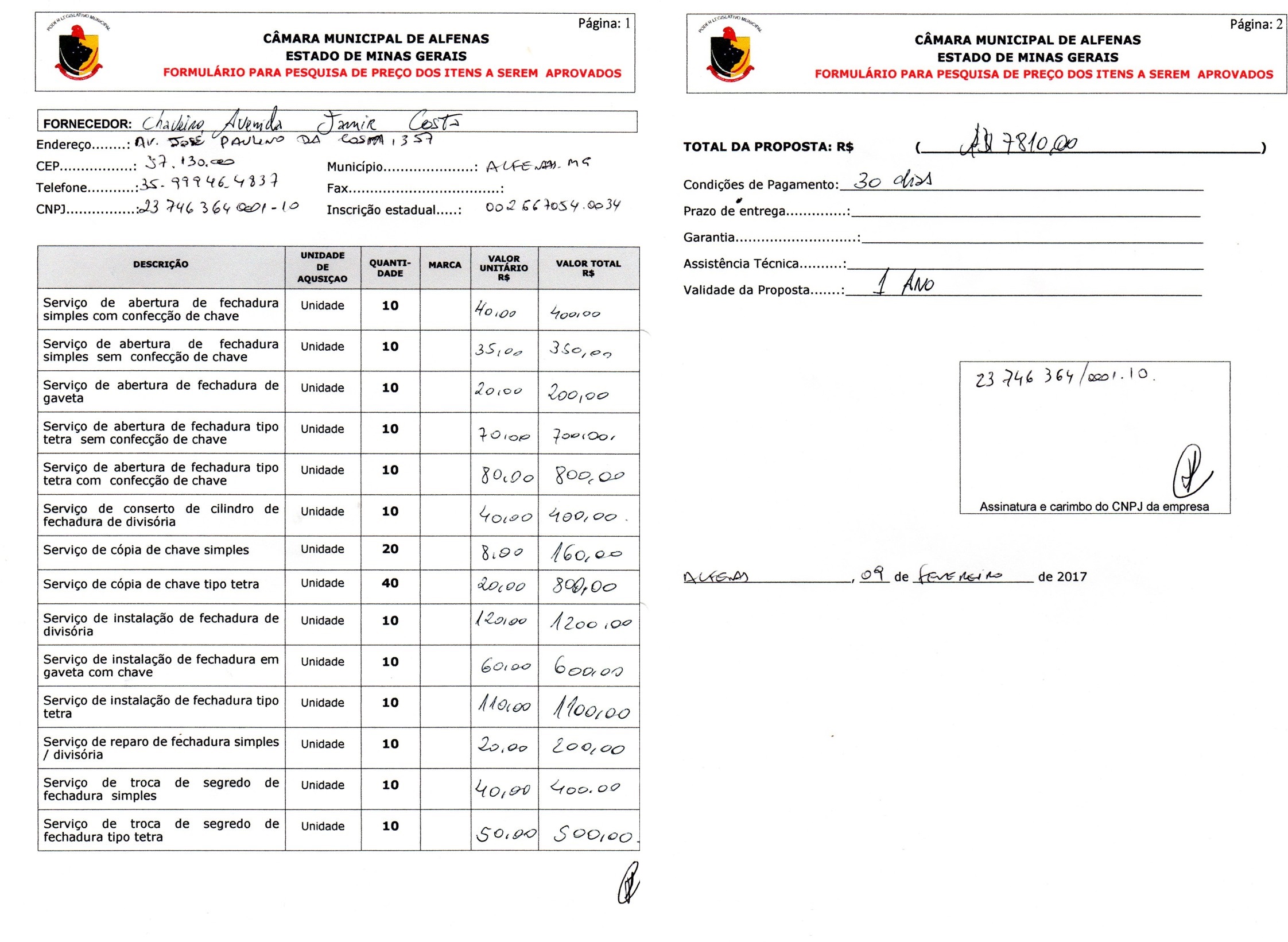 Data de abertura: 17/01/2017 | Número do Processo: 15/2017