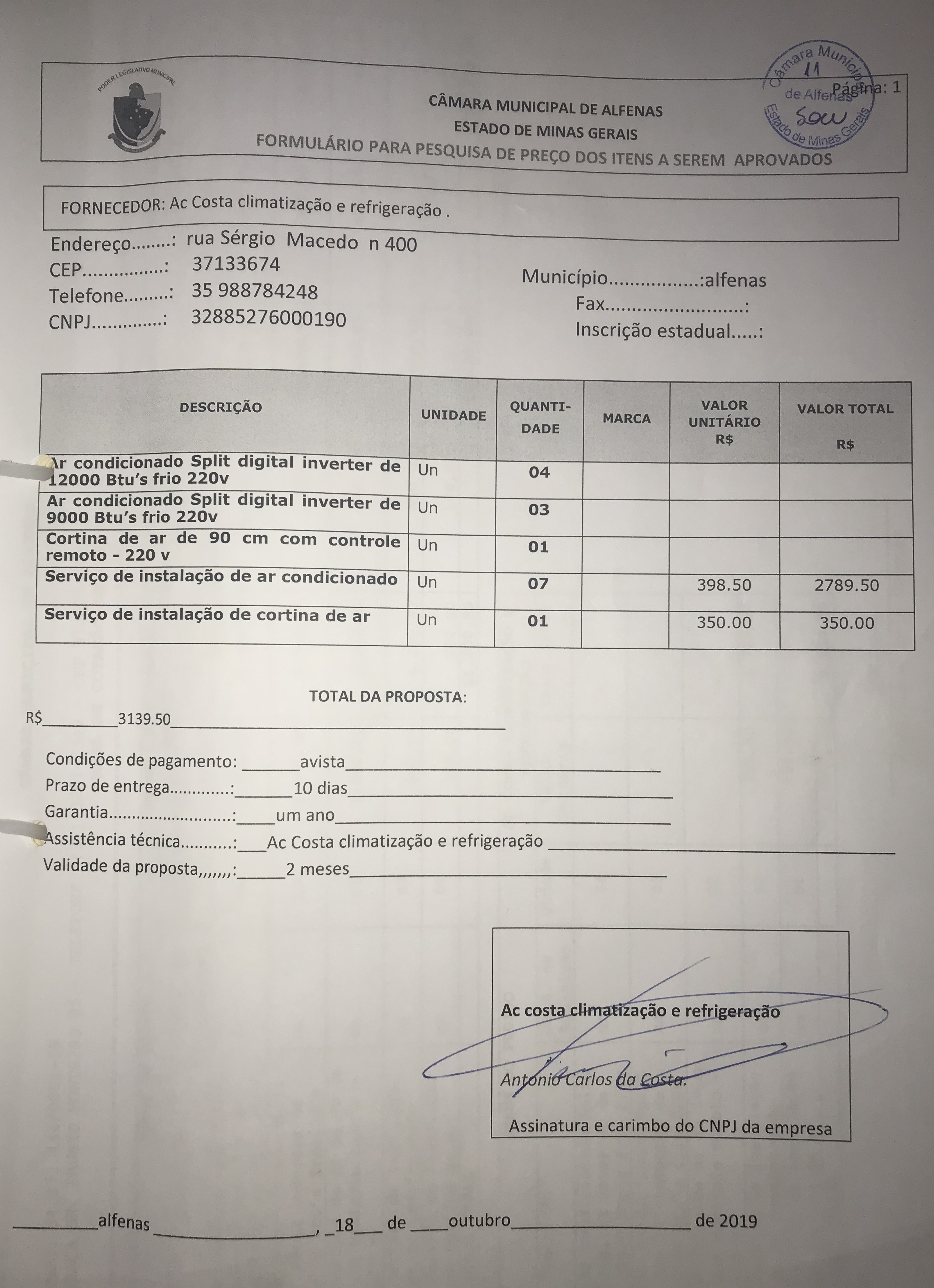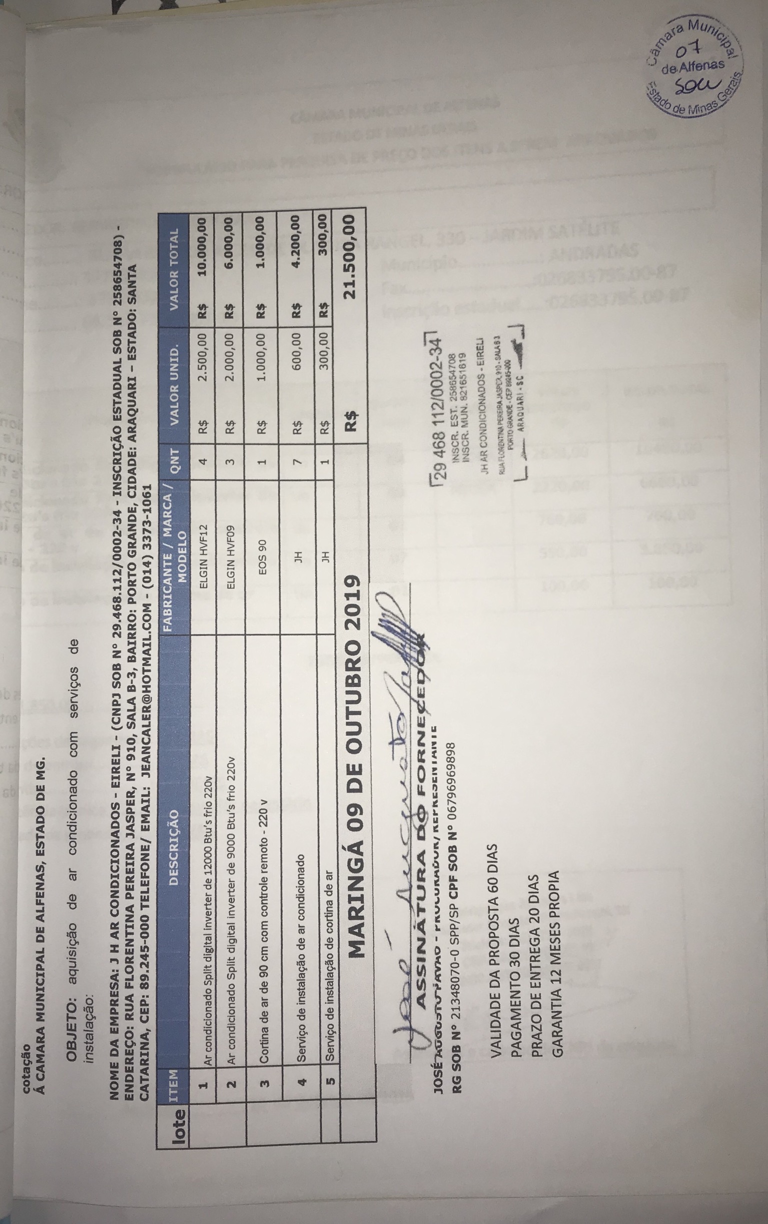 Extrato da publicação do edital do Pregão Presencial nr. 12/2019 - Ar condiciona