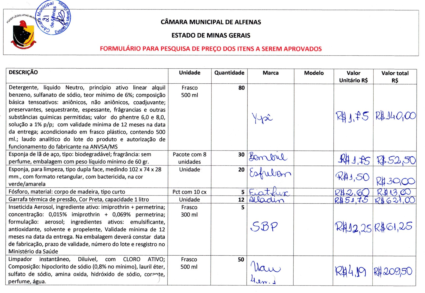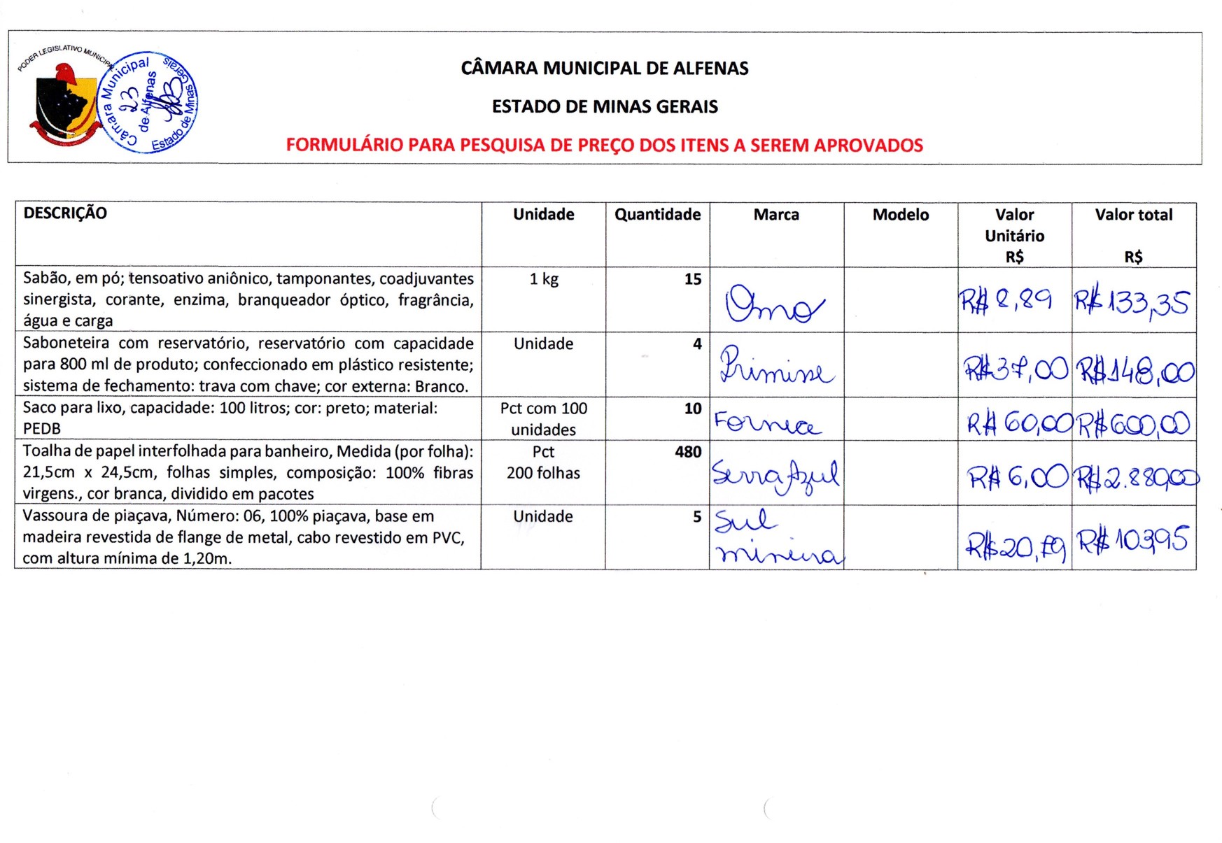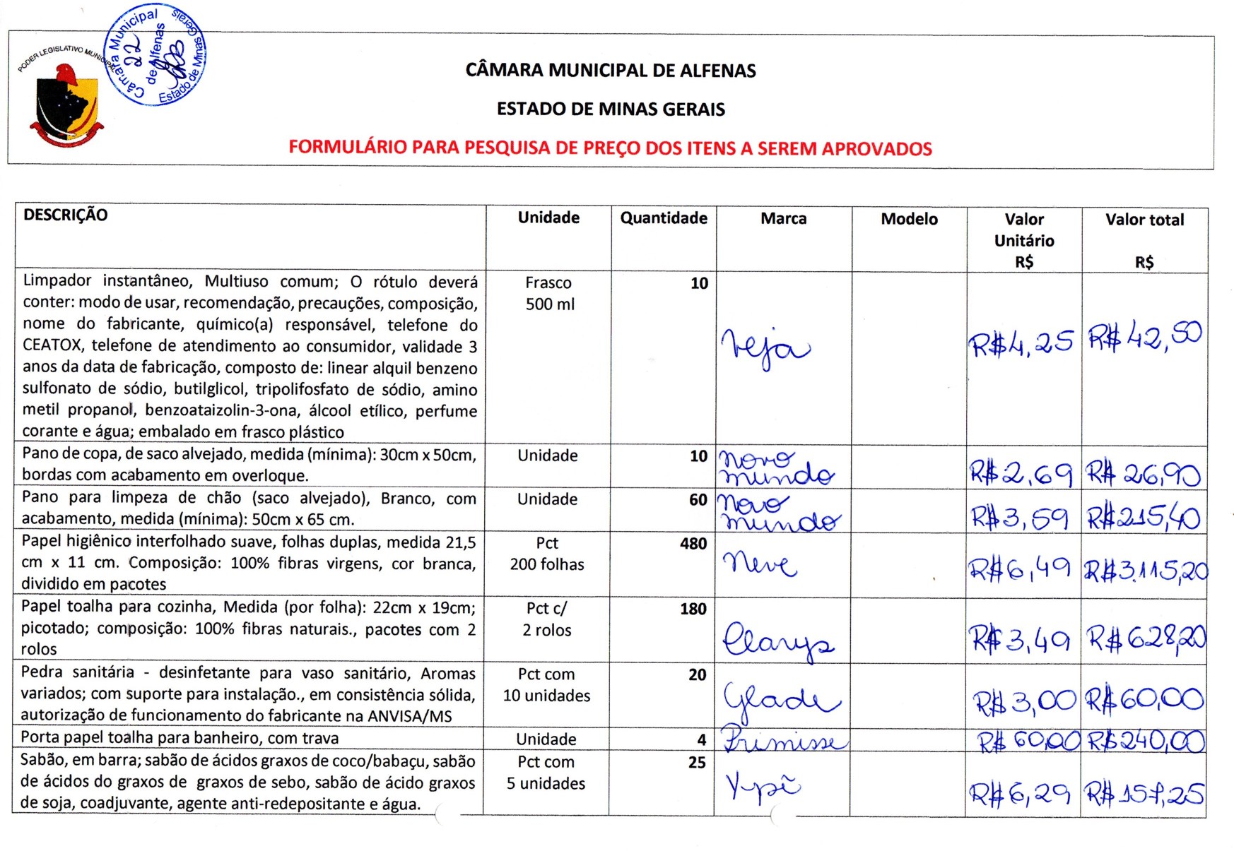Aquisição de material de copa, cozinha e limpeza para o exercício de 2017.
