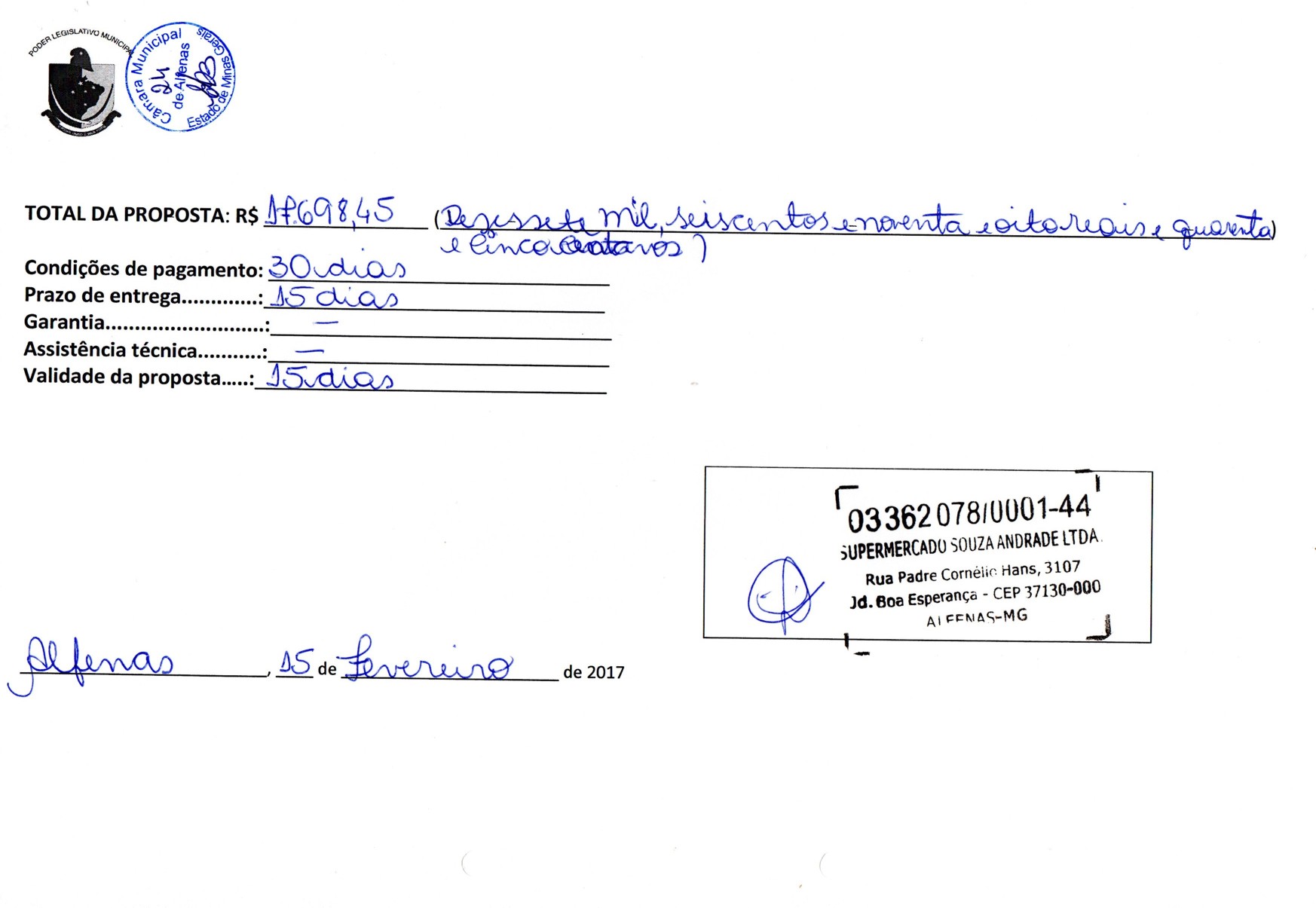 Data de abertura: 21/03/2017 | Número do Processo: 16/2017