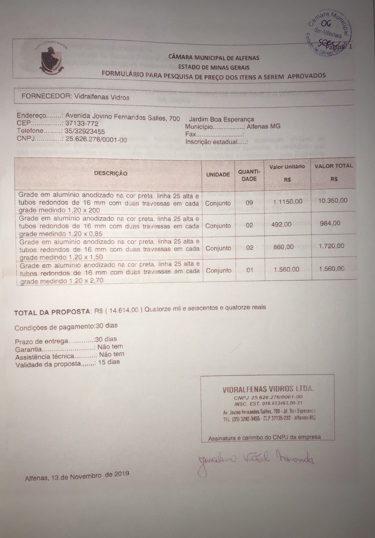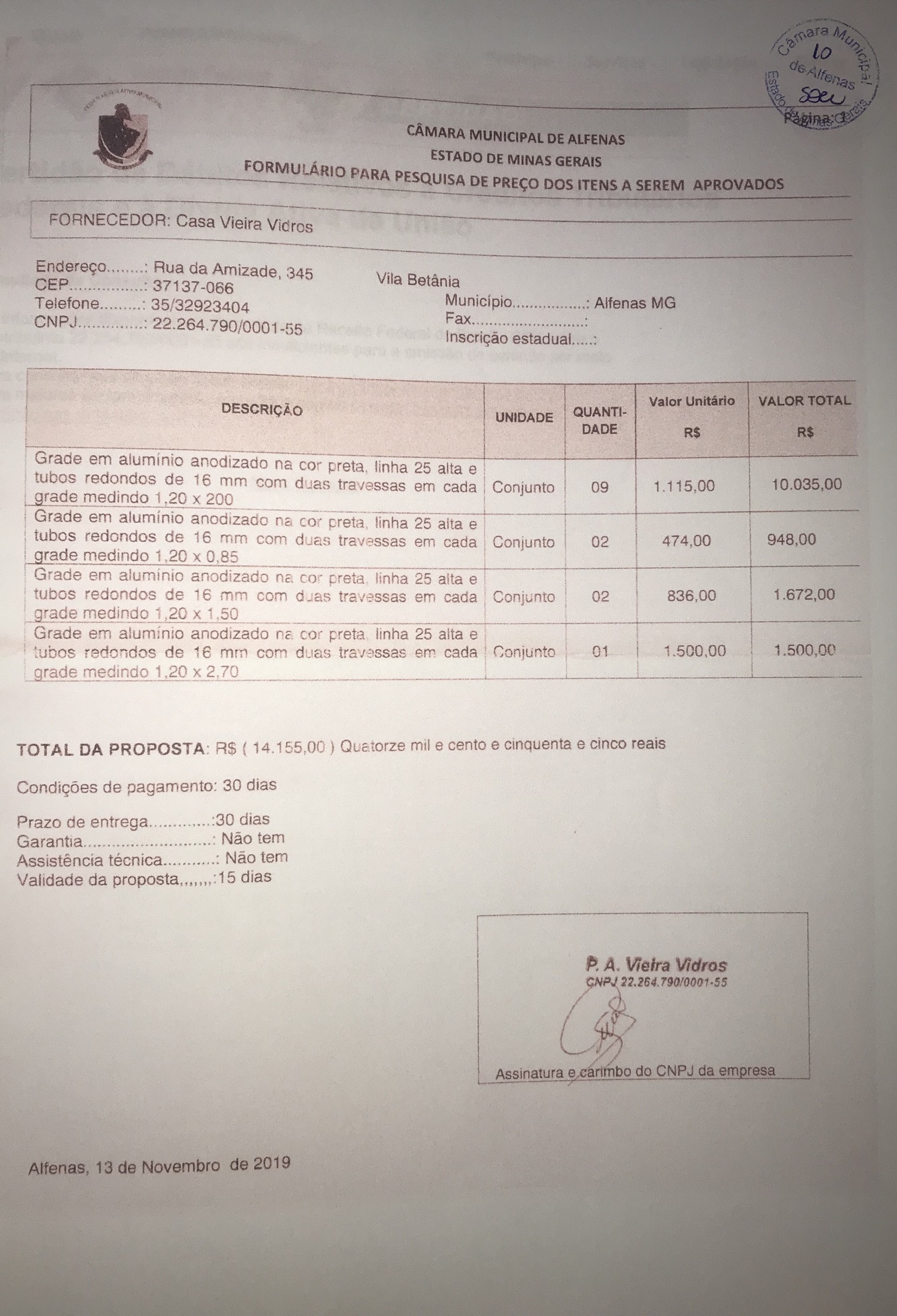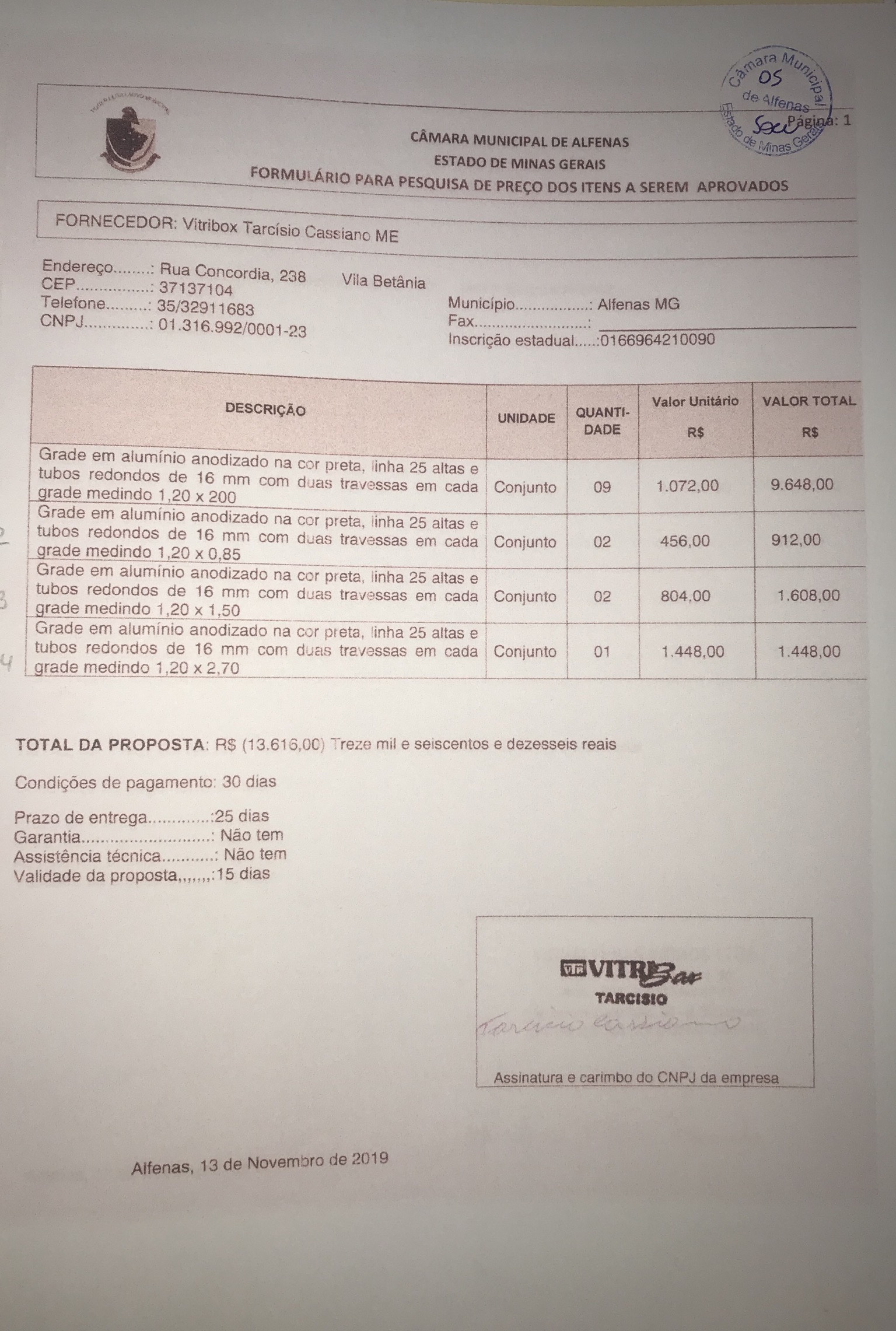 Confecção e instalação de grades nas janelas do Bloco 3 da Câmara Municipal