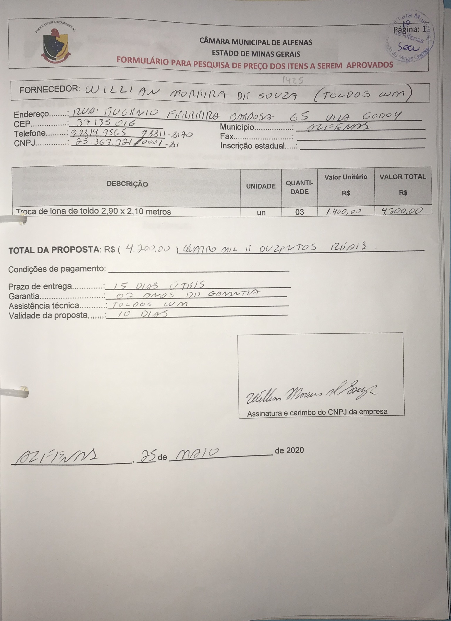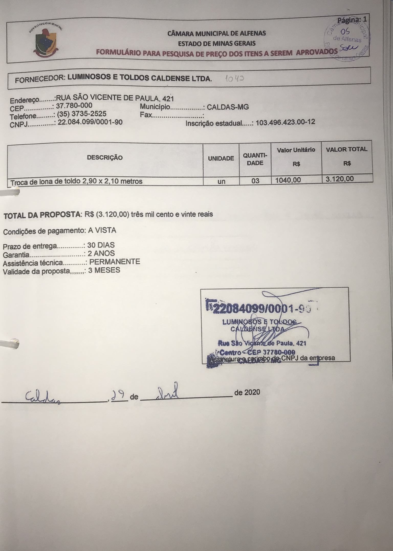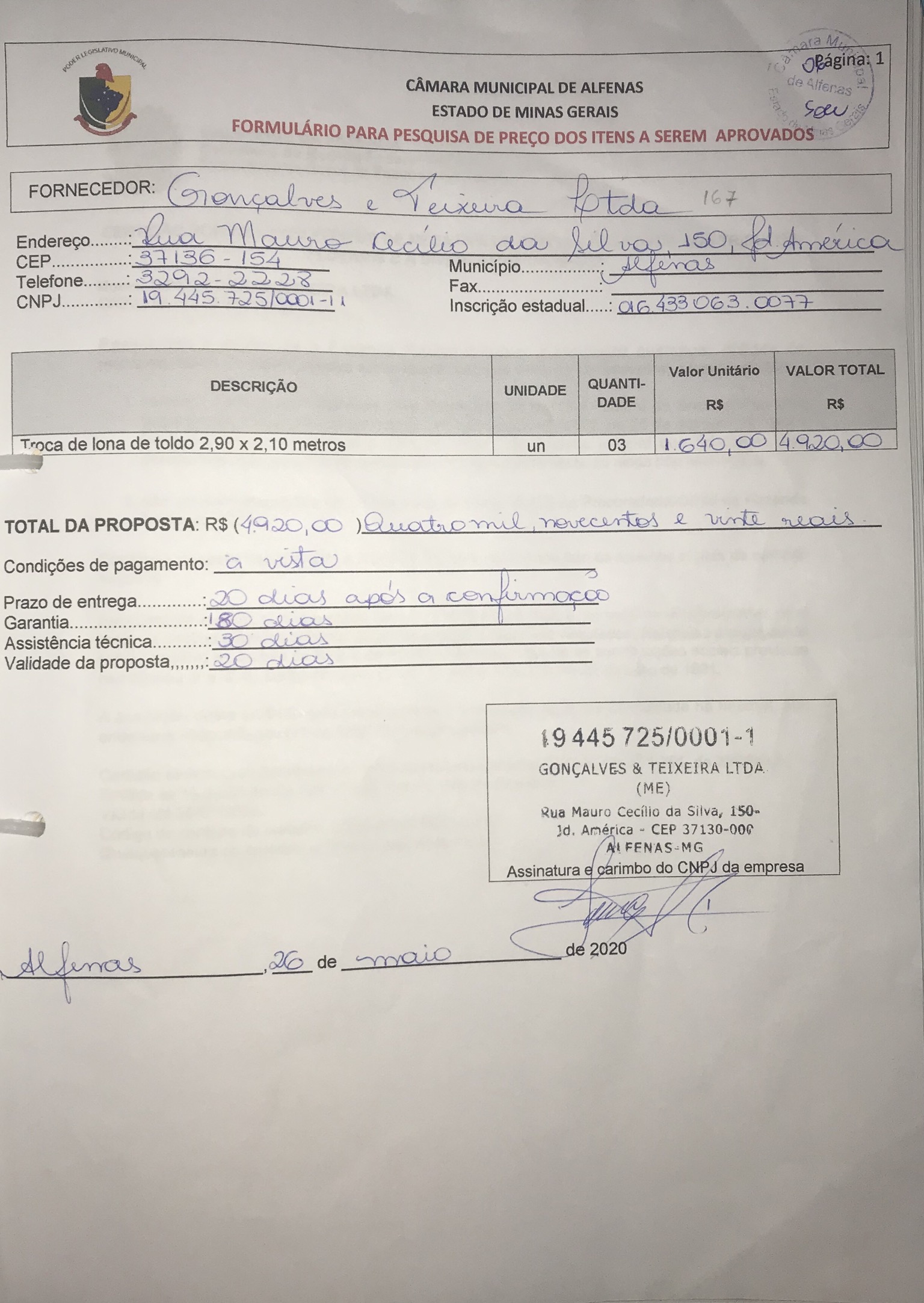 Data de abertura: 11/03/2020 | Número do Processo: 26/2020
