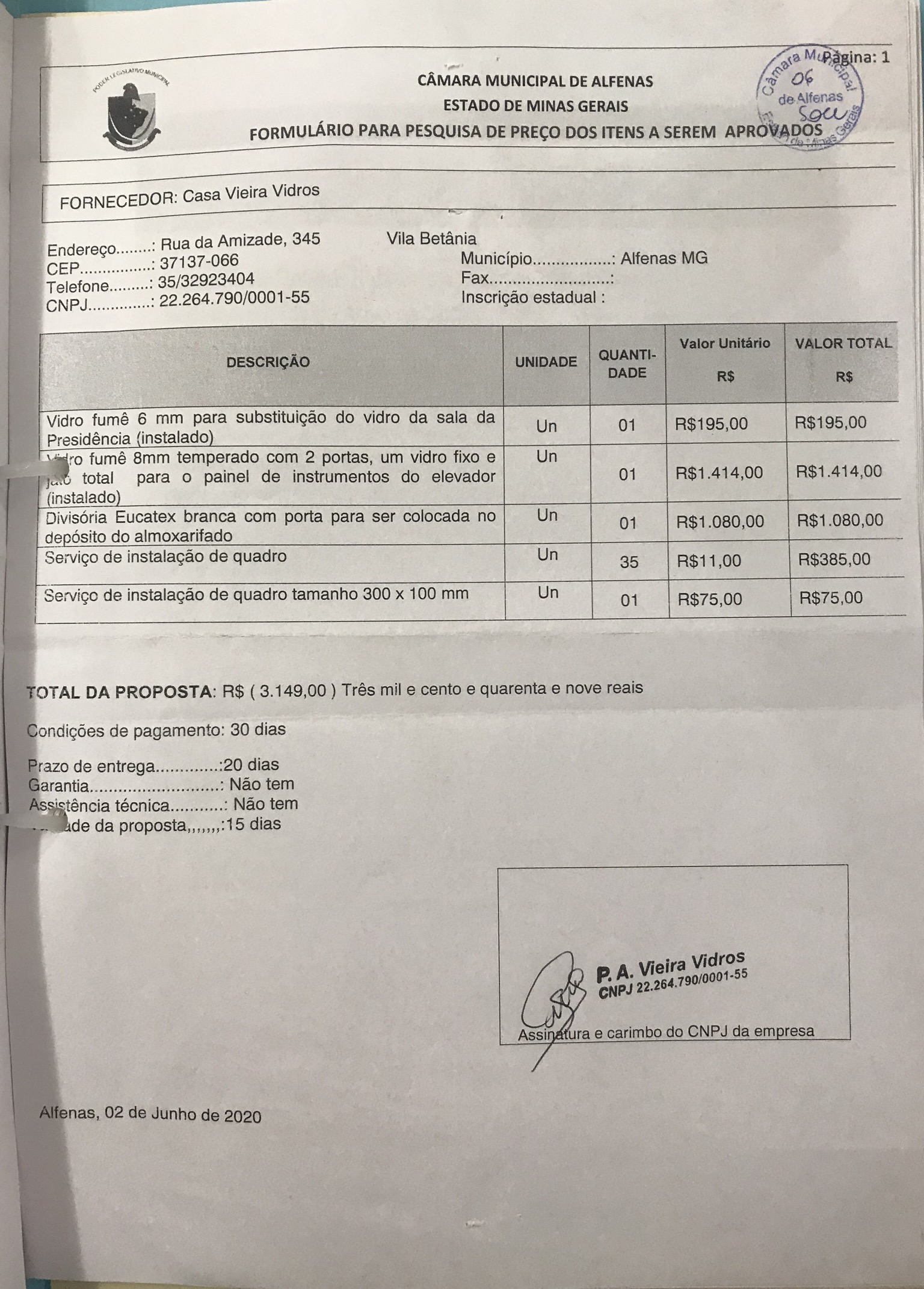 Data de abertura: 28/05/2020 | Número do Processo: 30/2020