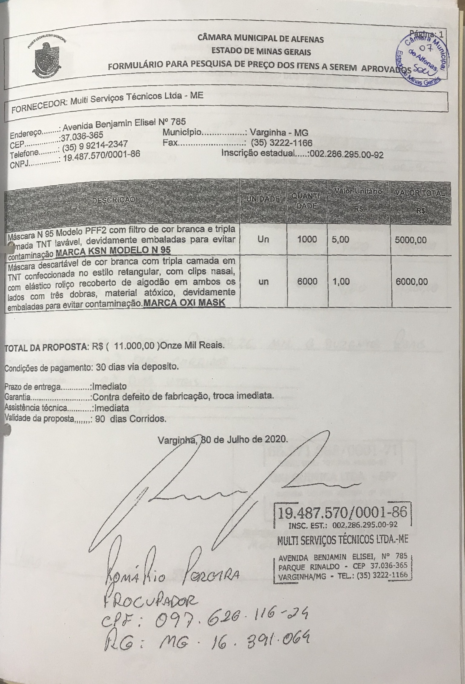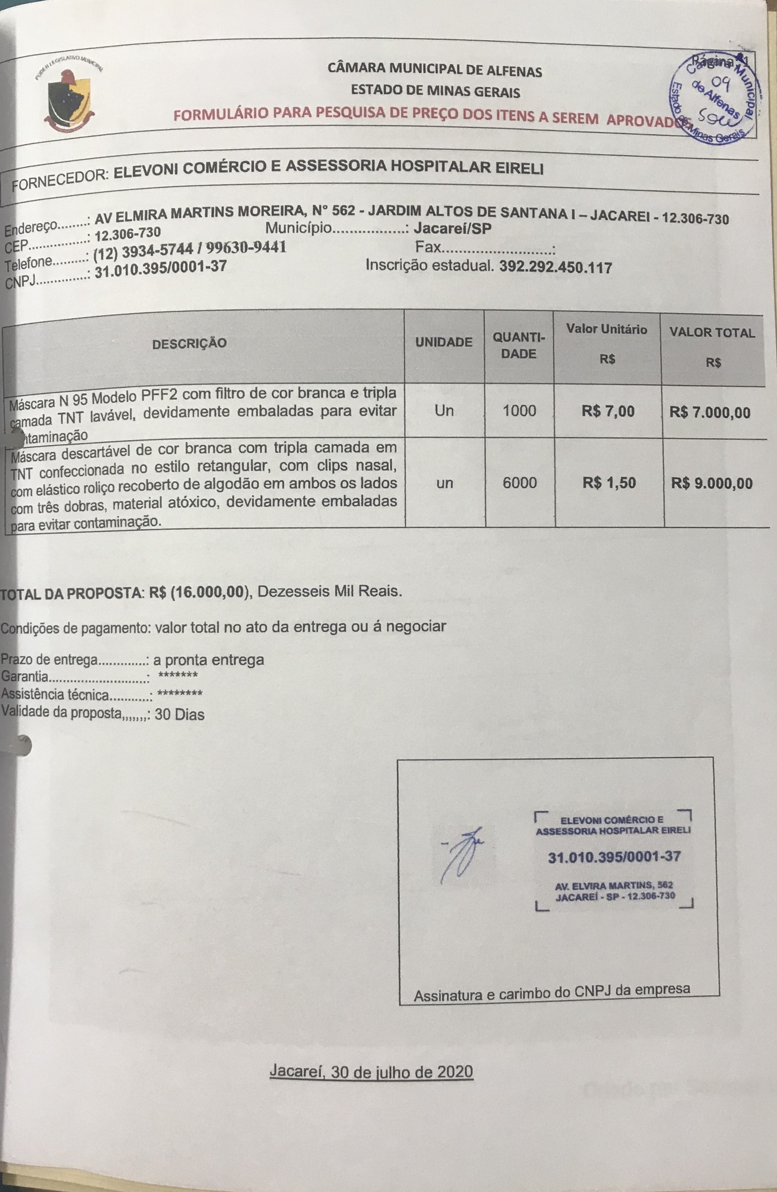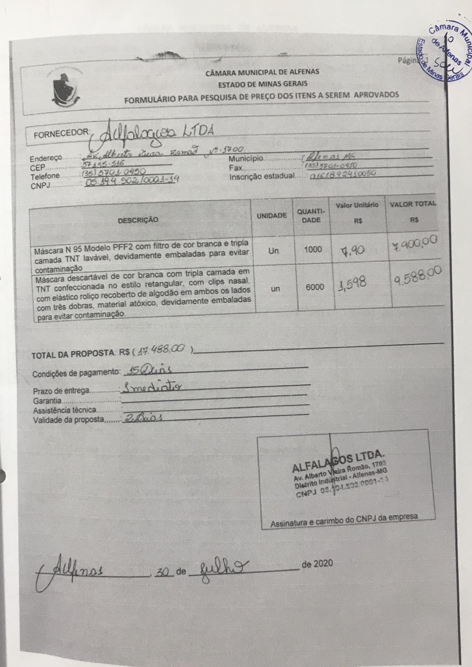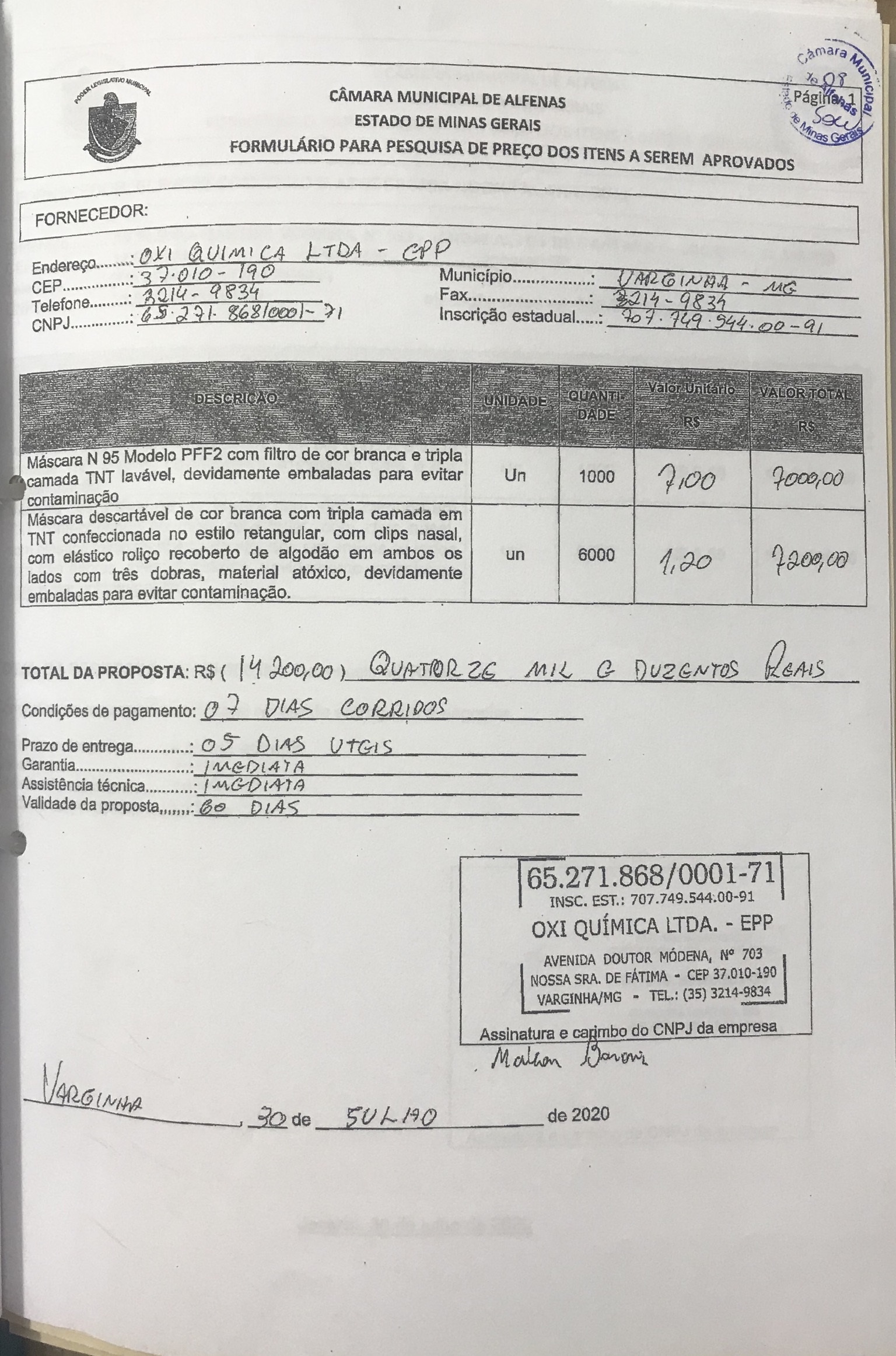 Aquisição de máscaras para prevenção de Covid-19 a serem utilizadas por vereadores, servidores e visitantes da Câmara