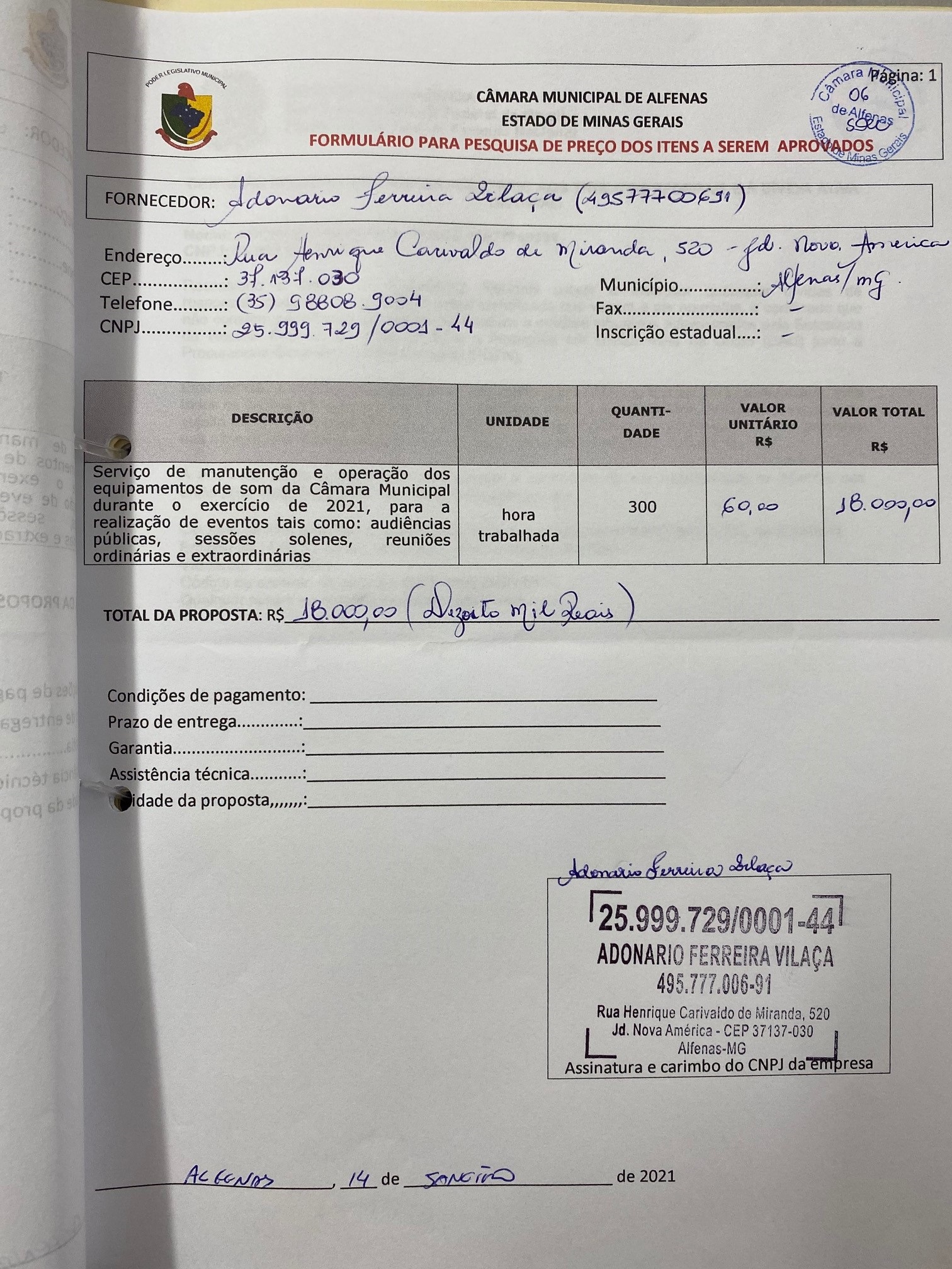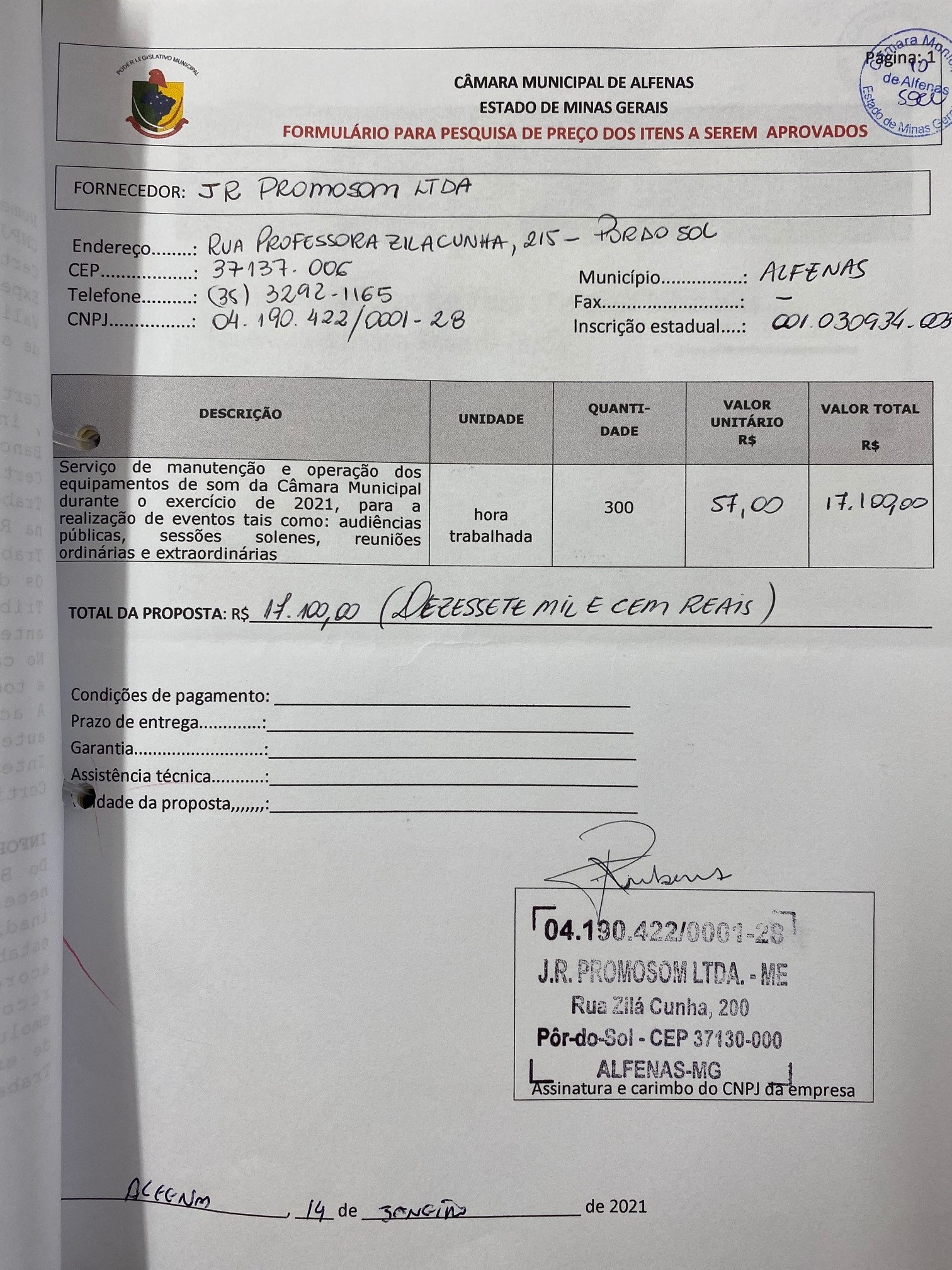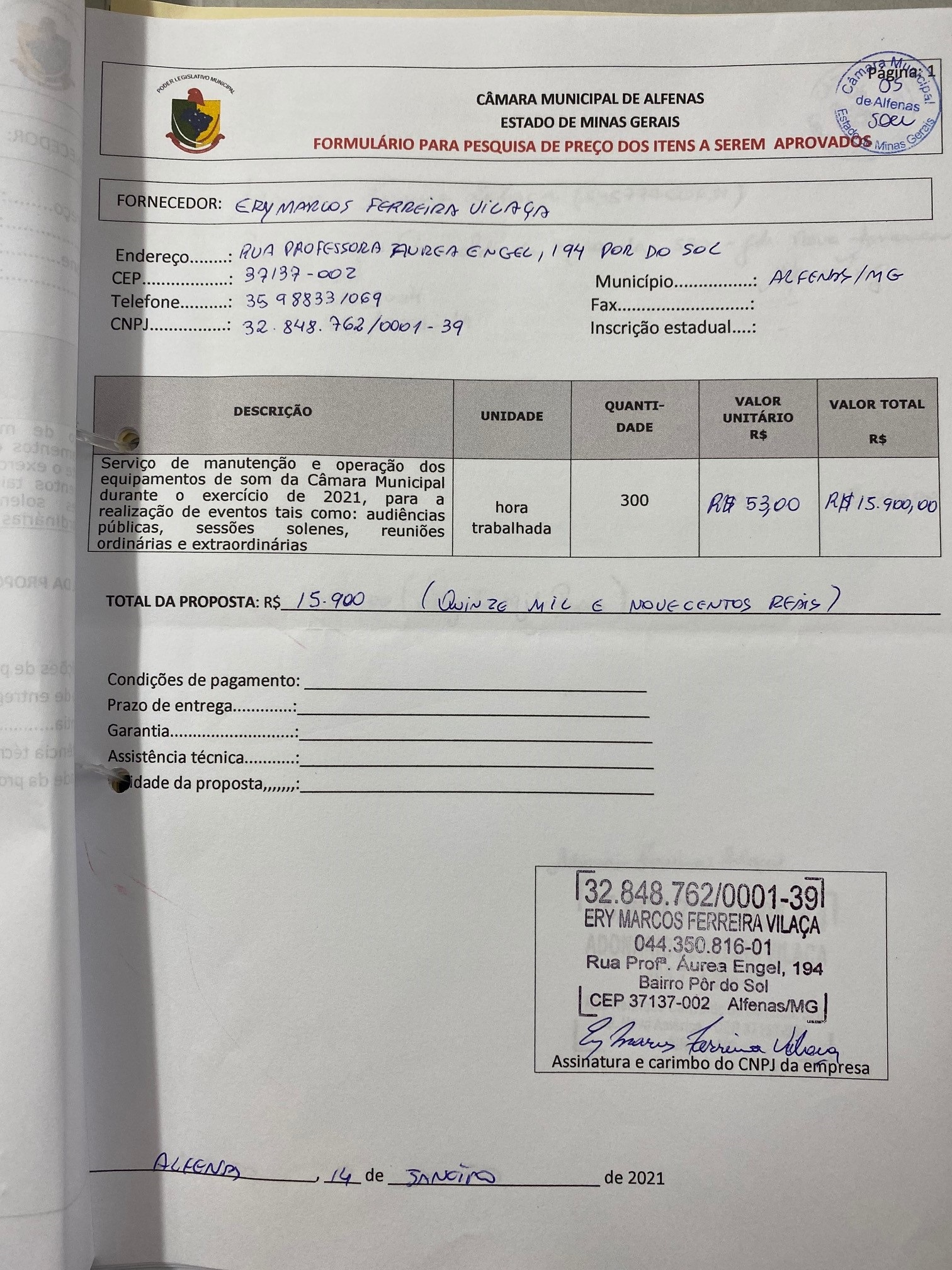 Serviço de manutenção e operação dos equipamentos de som da Câmara Municipal