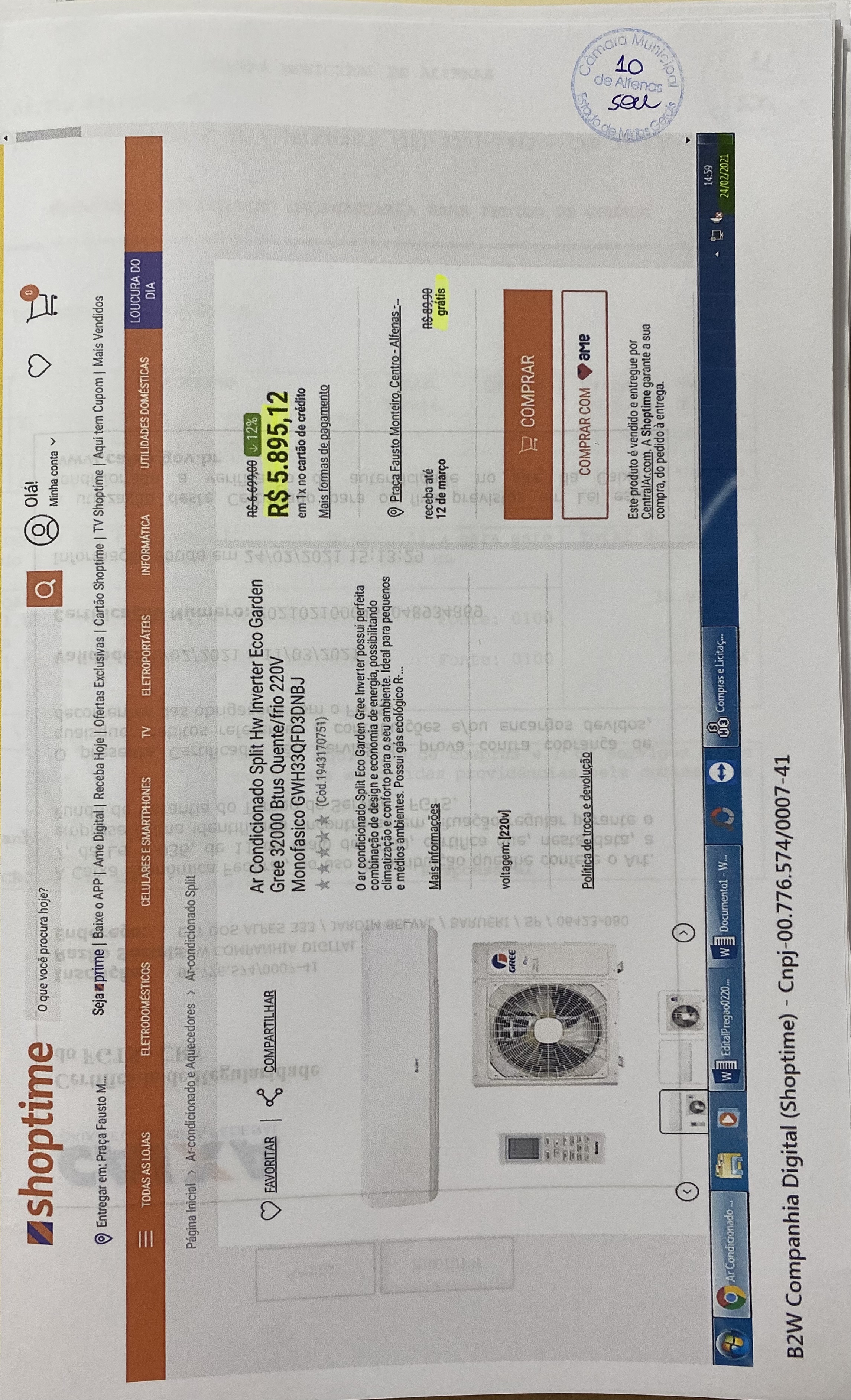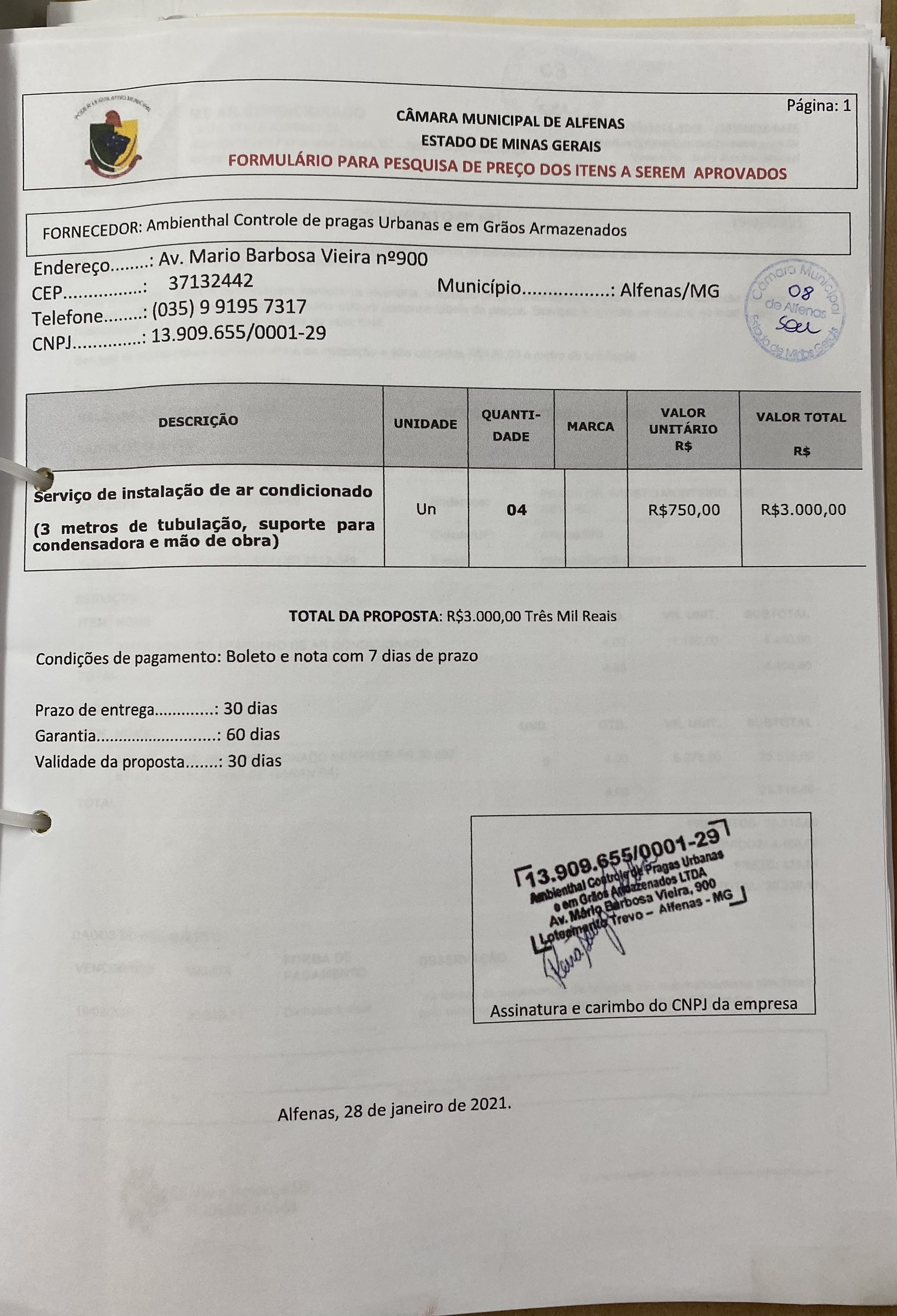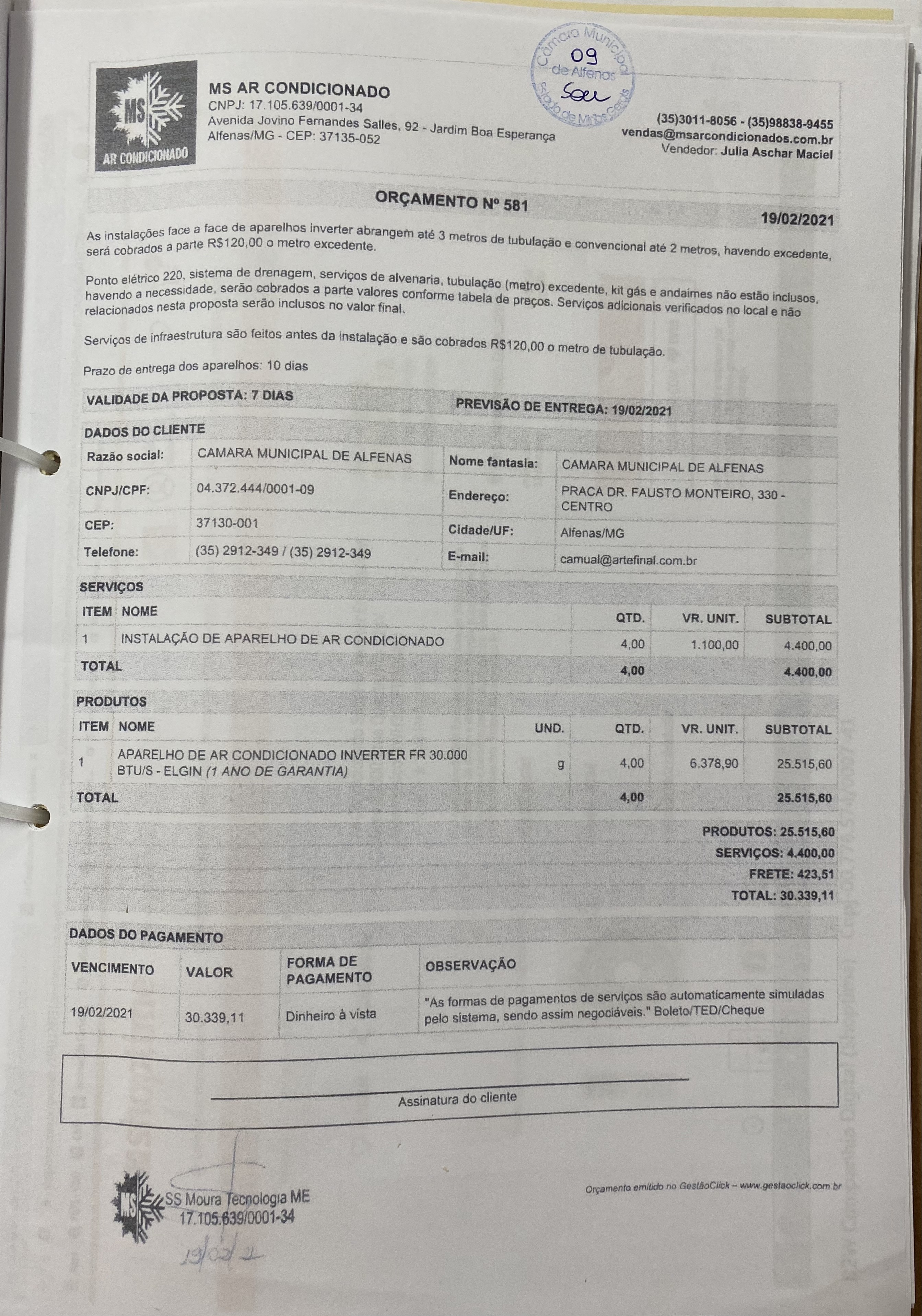 Aquisição e instalação de aparelhos de ar condicionado no plenário da Câmara Municipal
