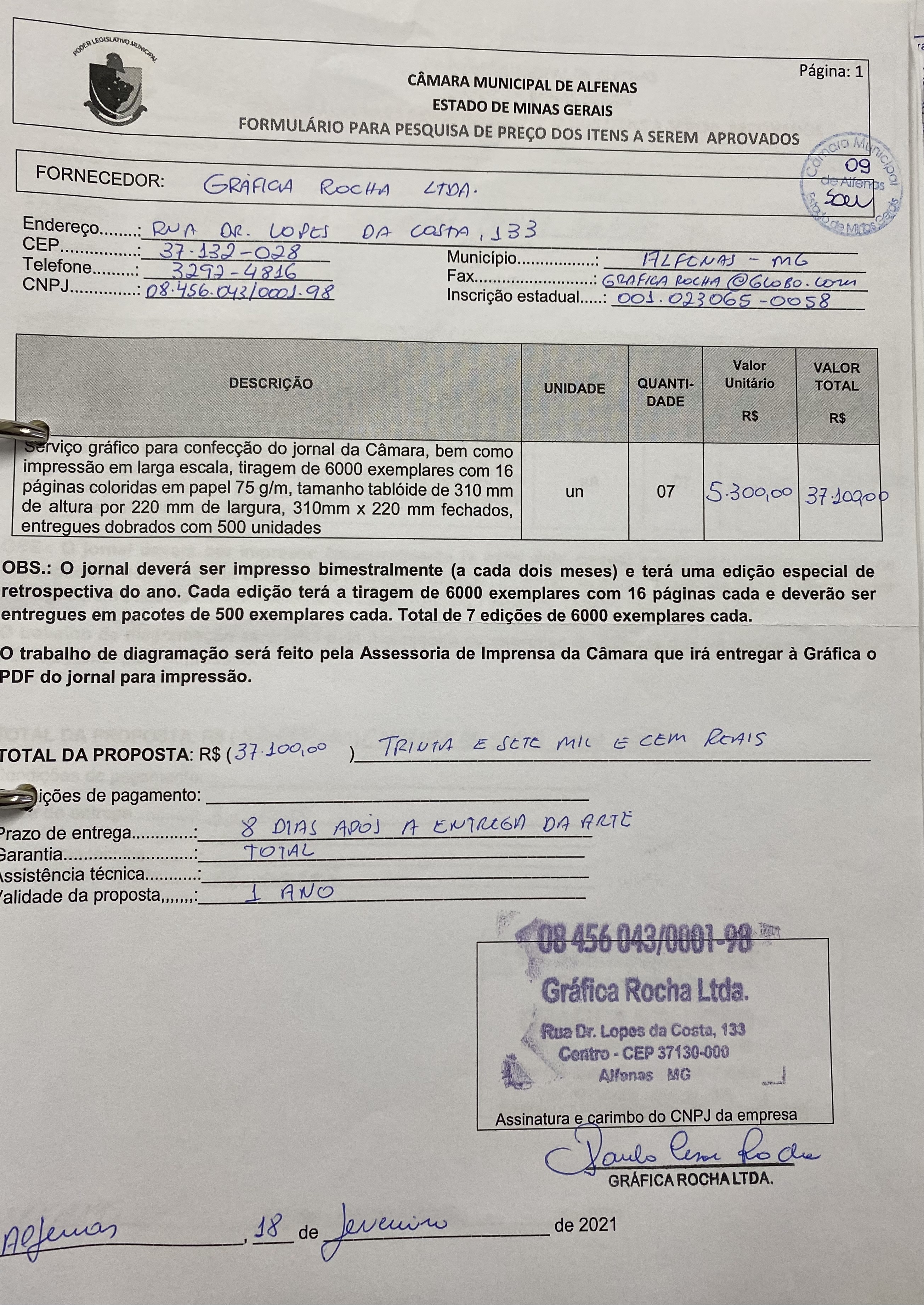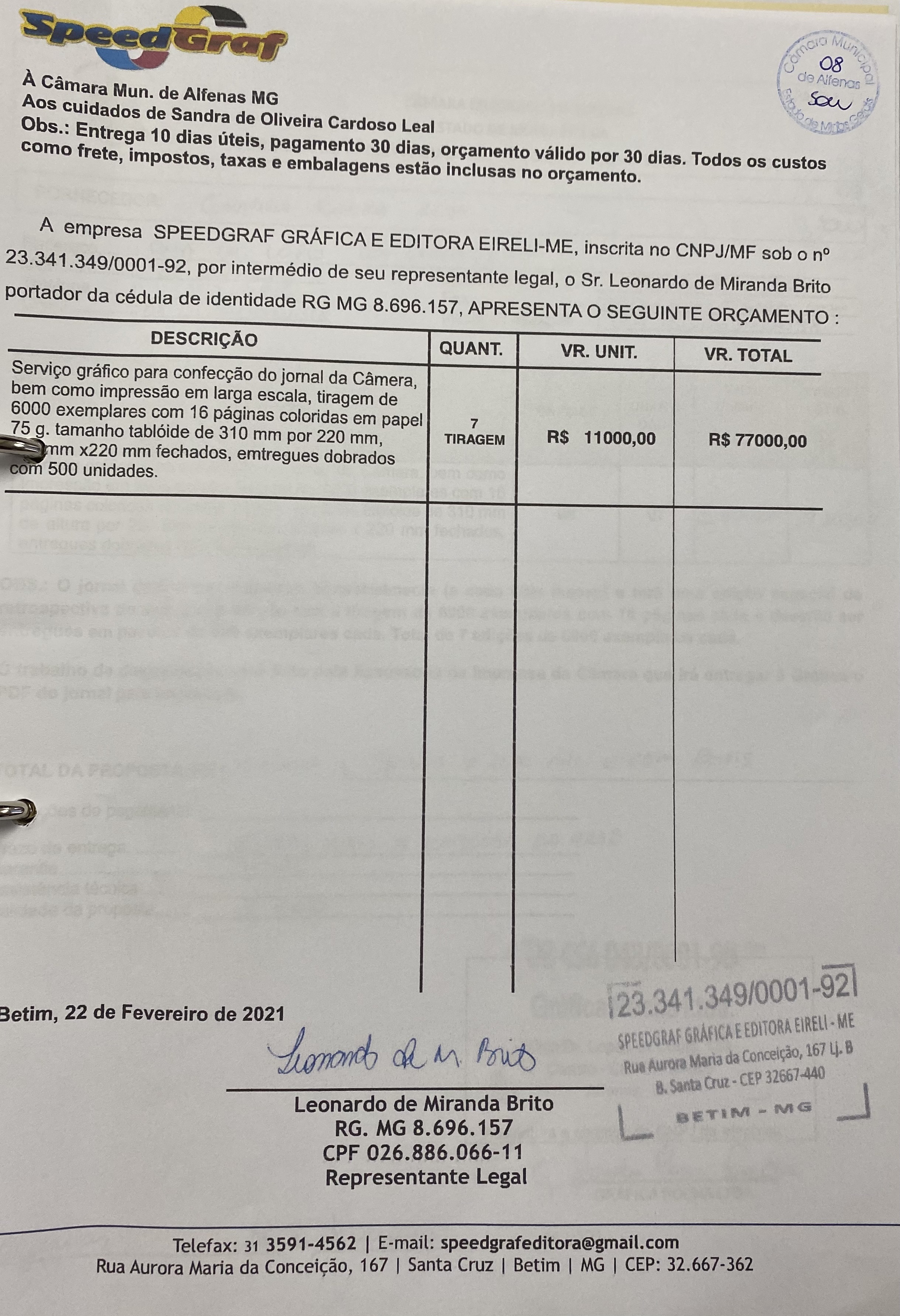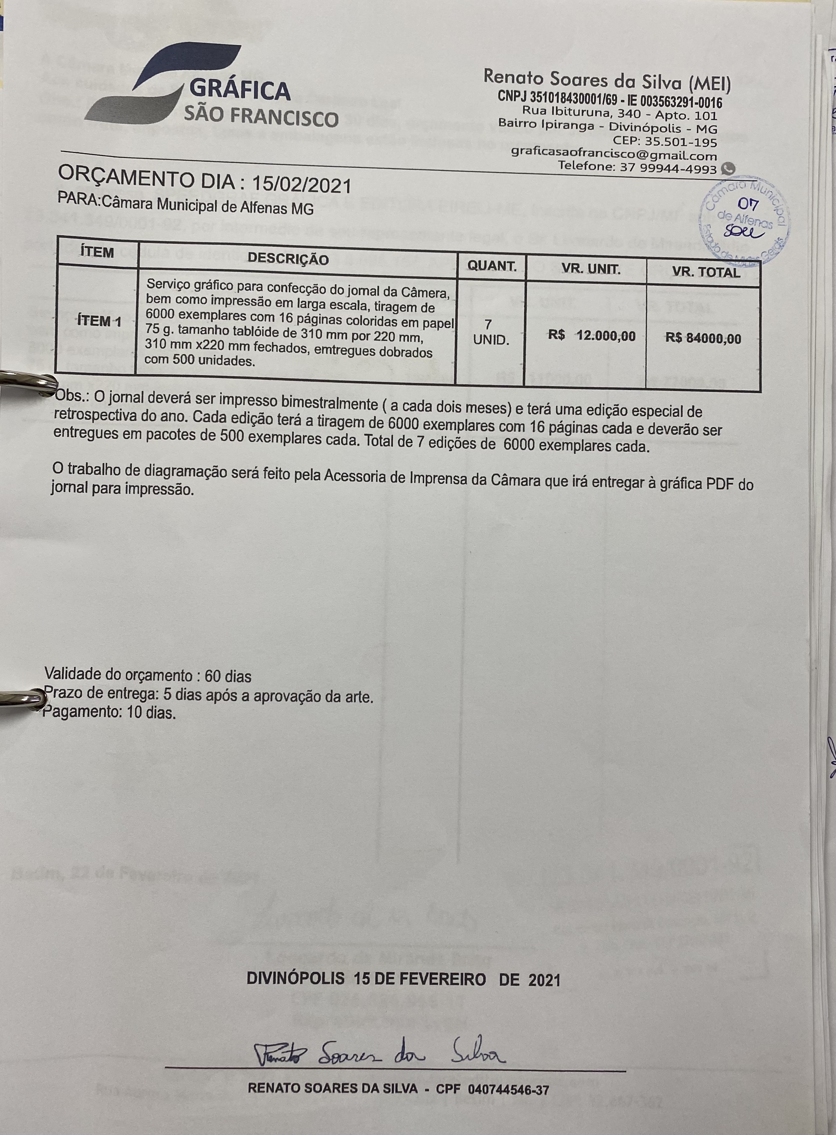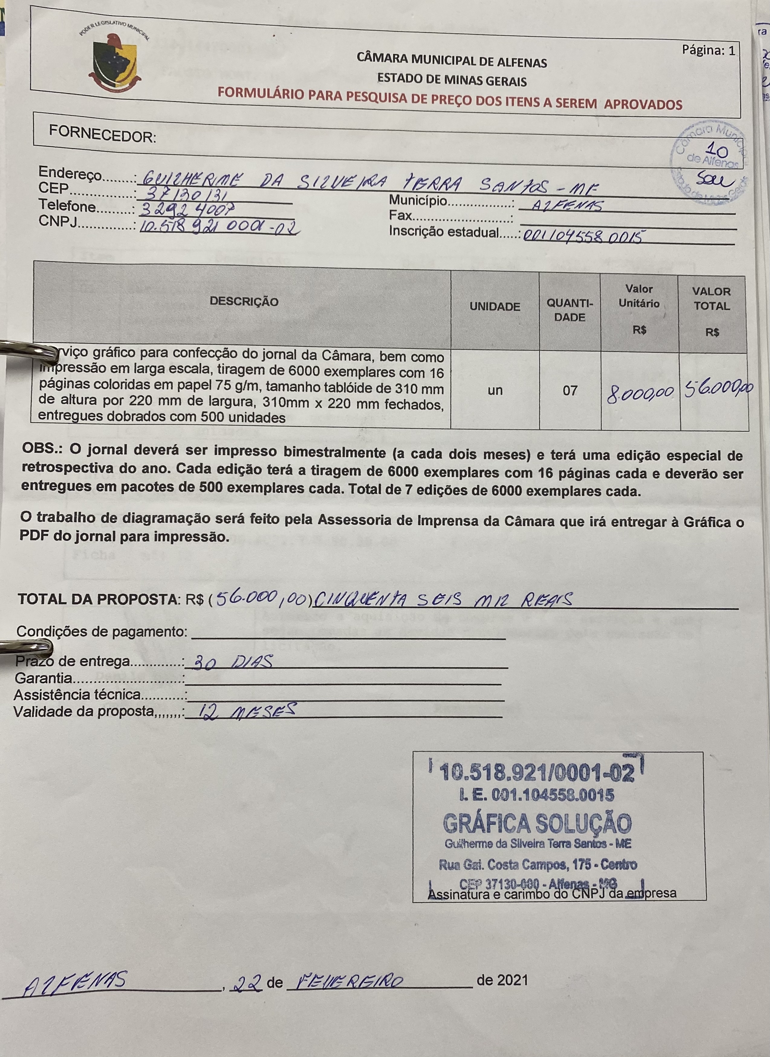 Serviço gráfico para impressão do Jornal da Câmara