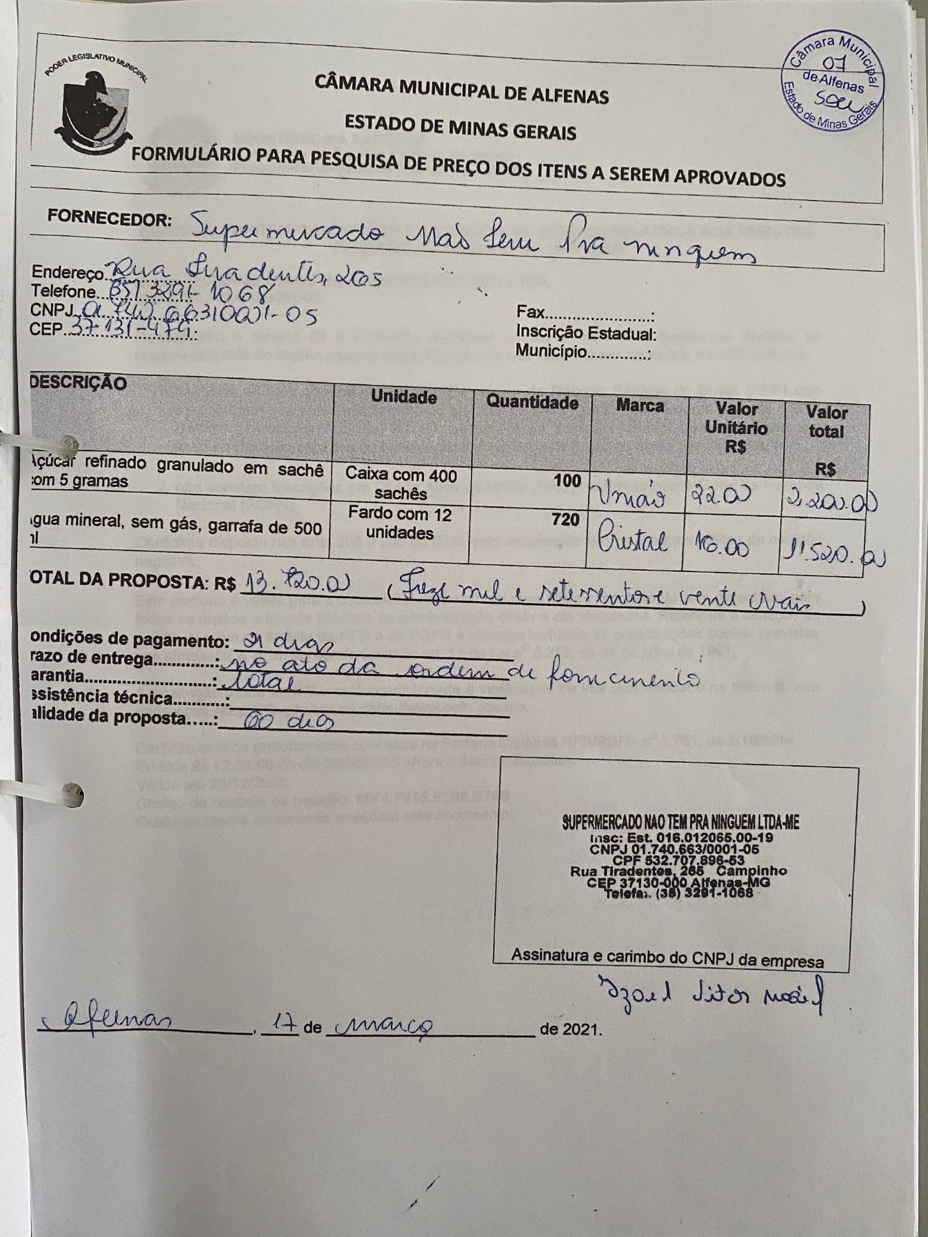 Data de abertura: 17/03/2021 | Número do Processo: 26/2021