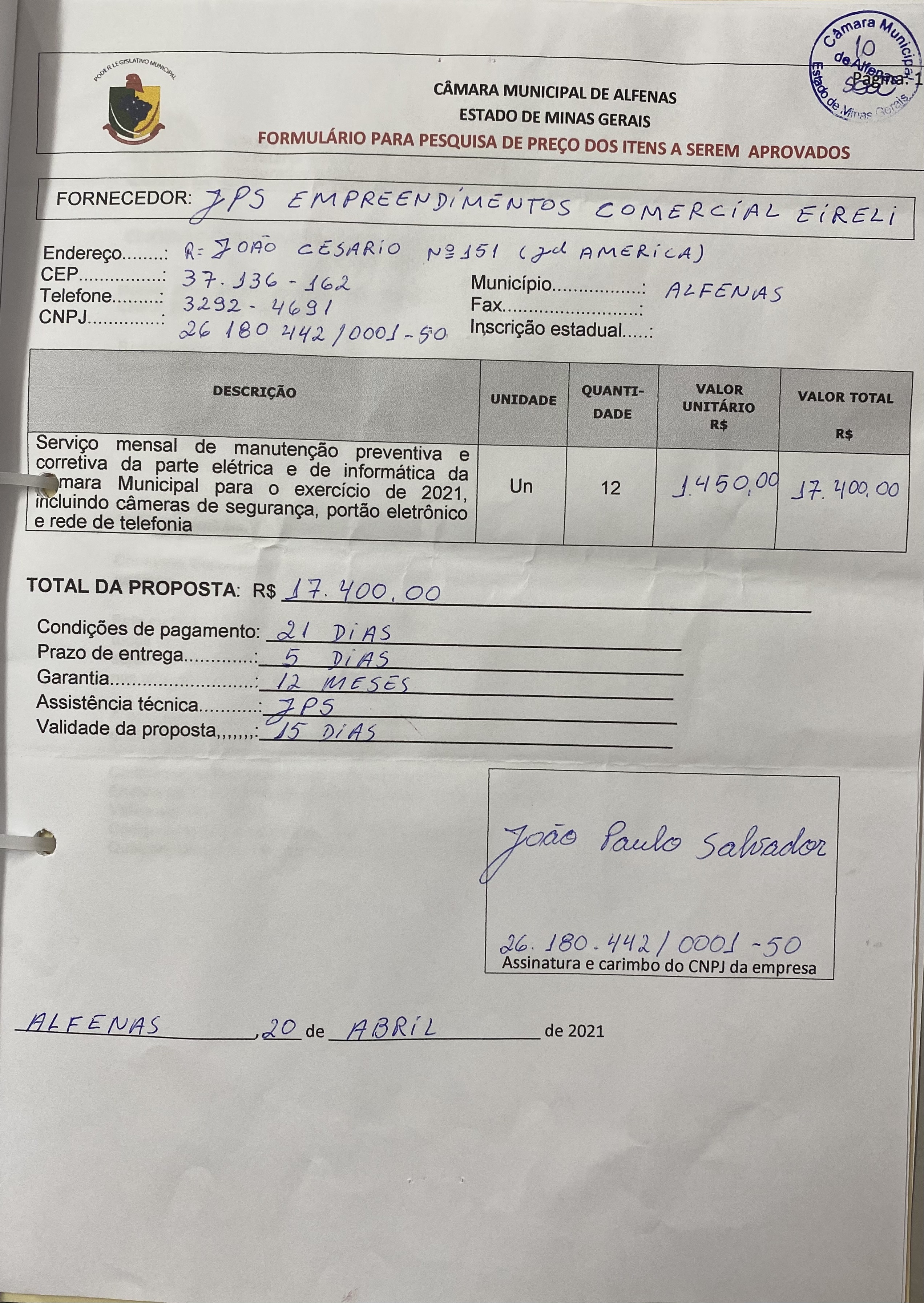 Data de abertura: 23/03/2021 | Número do Processo: 31/2021