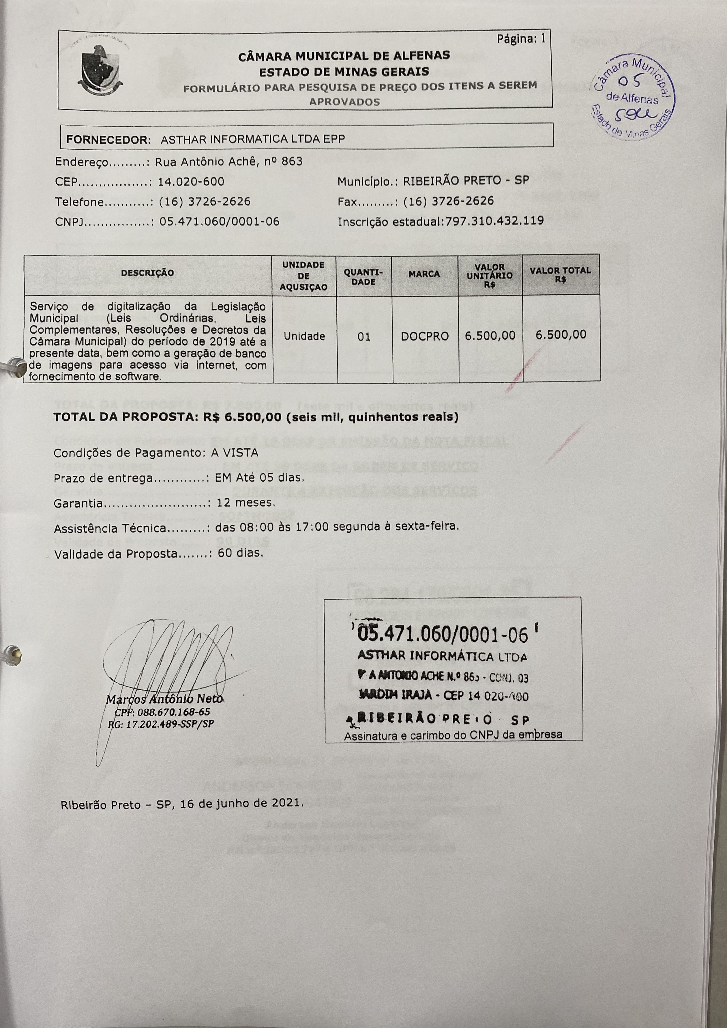 Data de abertura: 16/06/2021 | Número do Processo: 42/2021