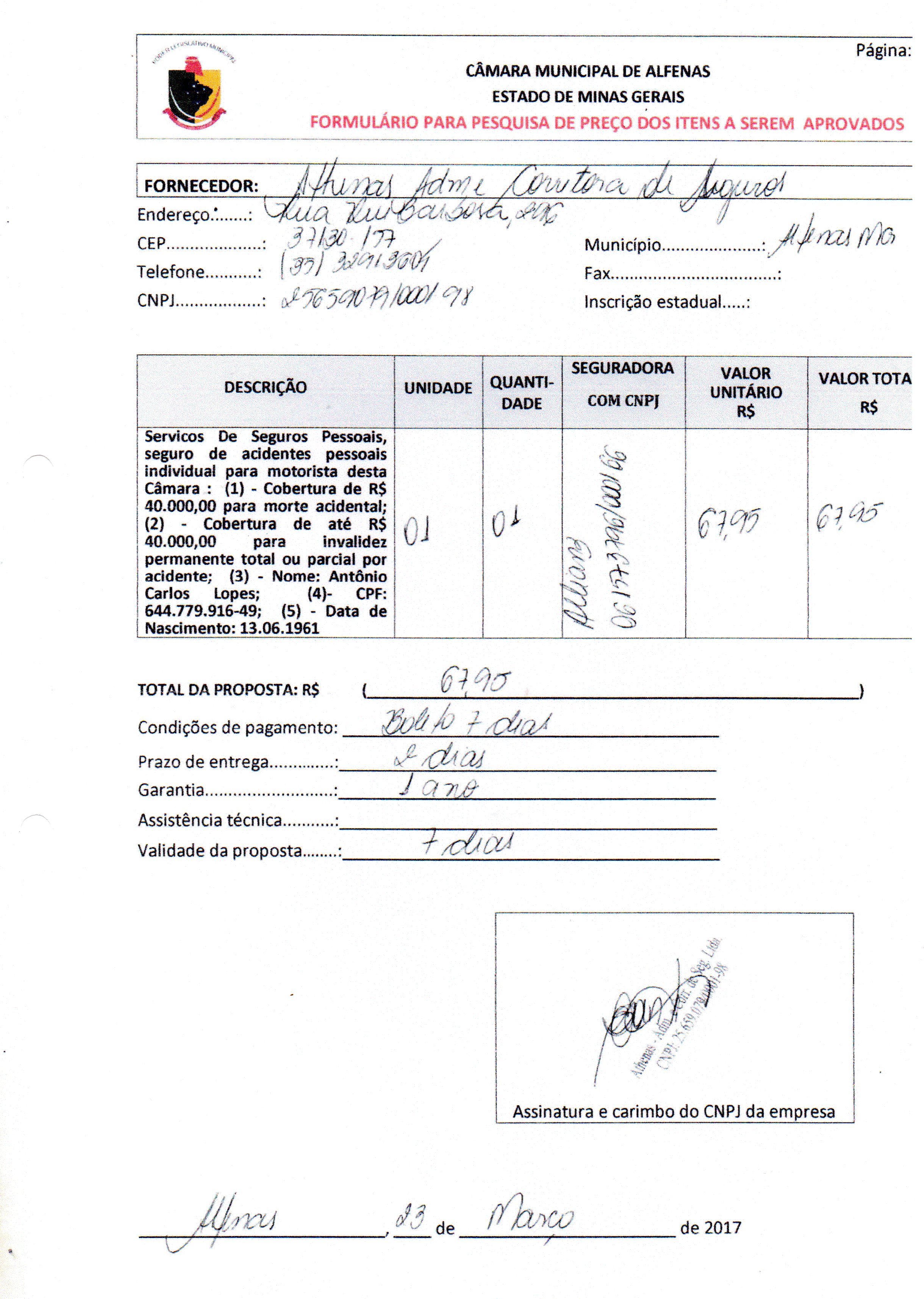 Data de abertura: 20/03/2017 | Número do Processo: 22/2017