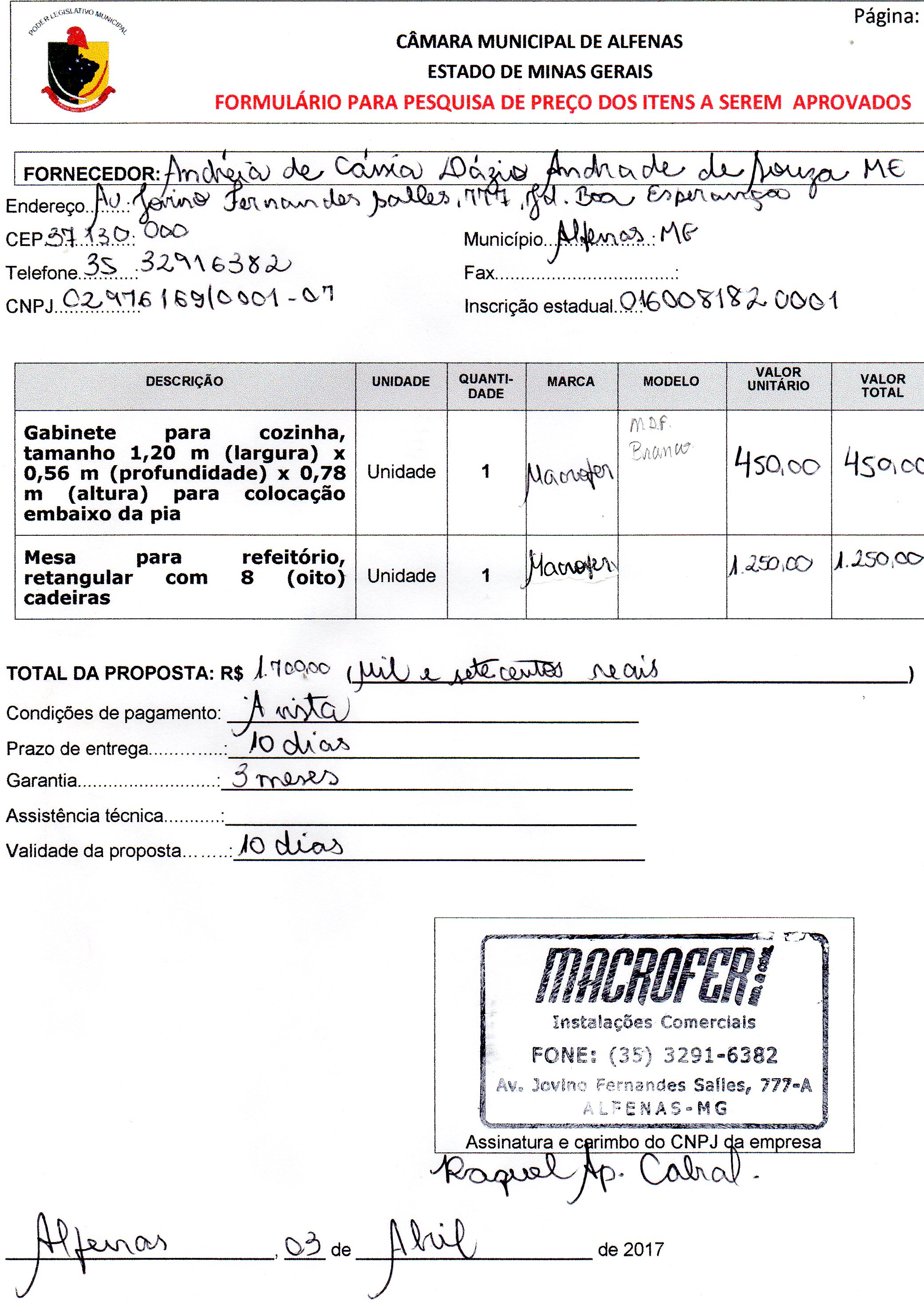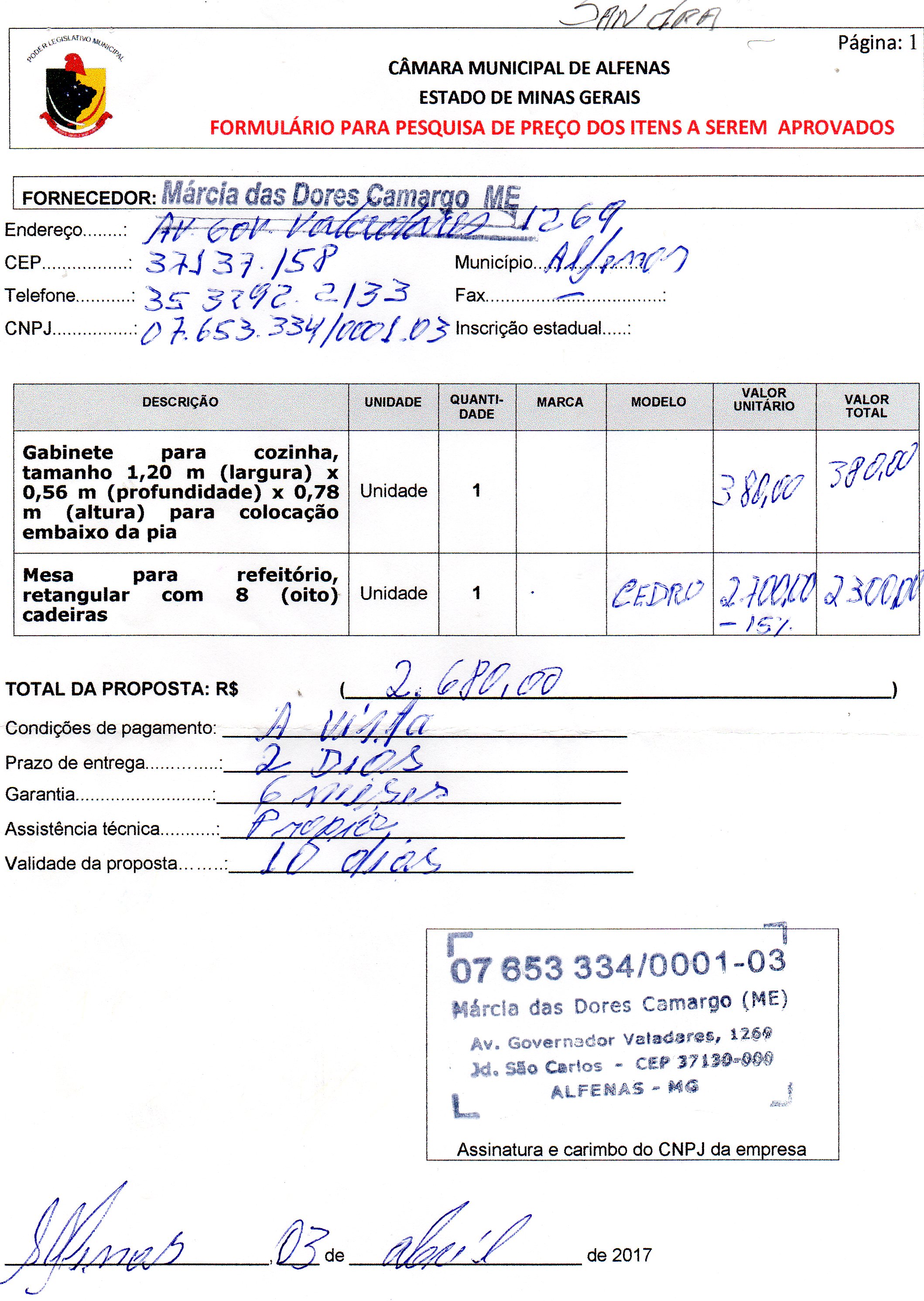 Data de abertura: 30/03/2017 | Número do Processo: 26/2017