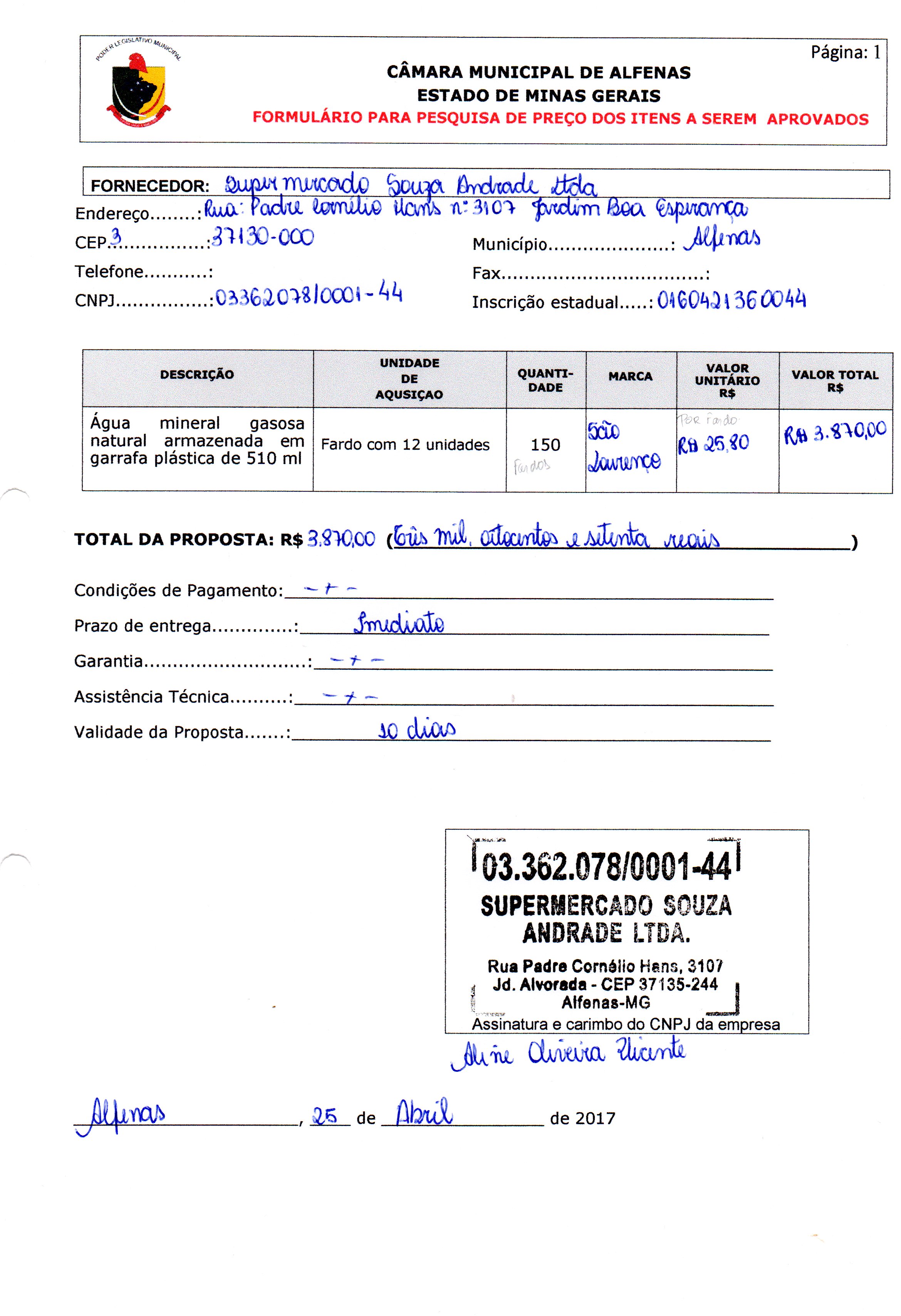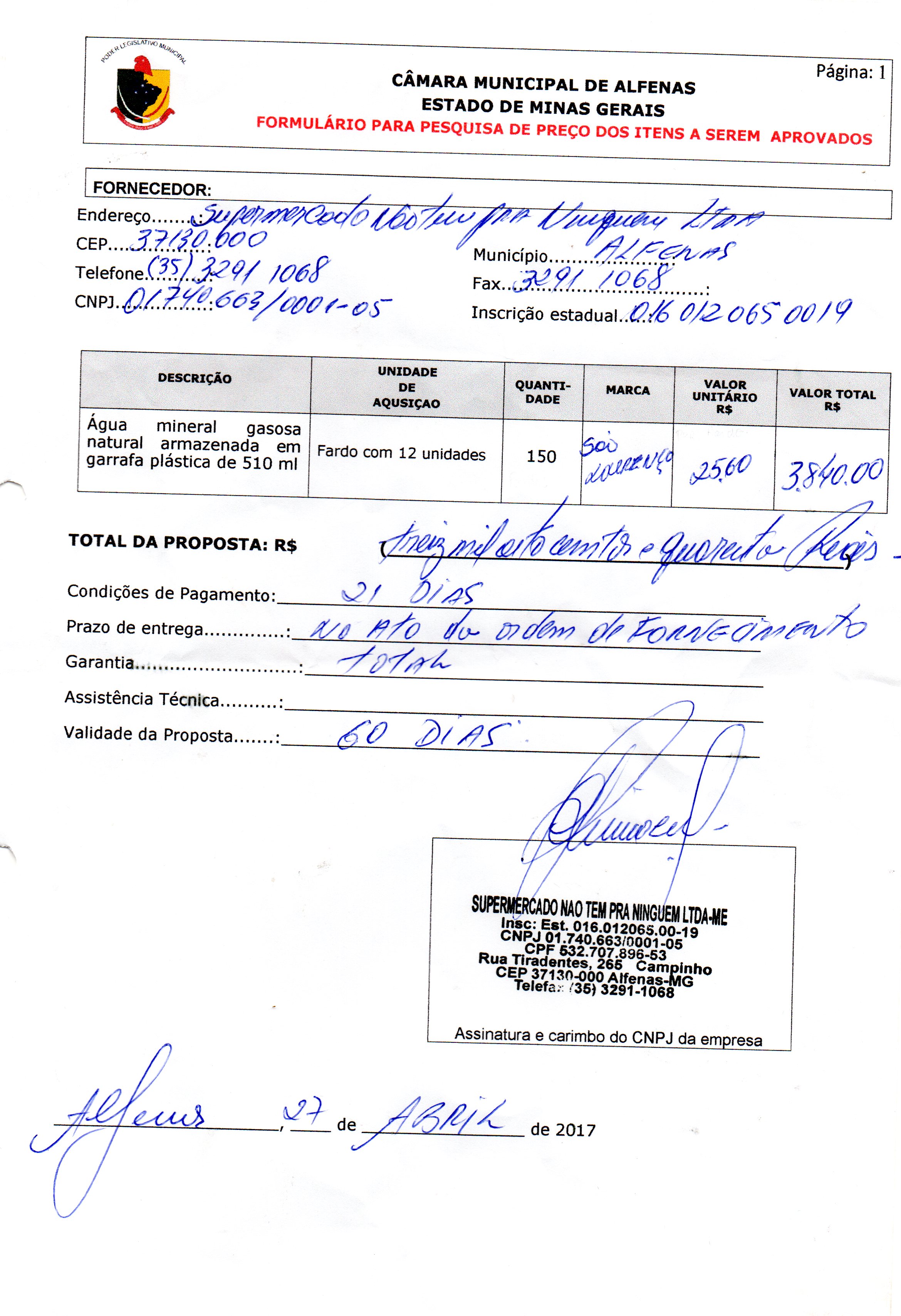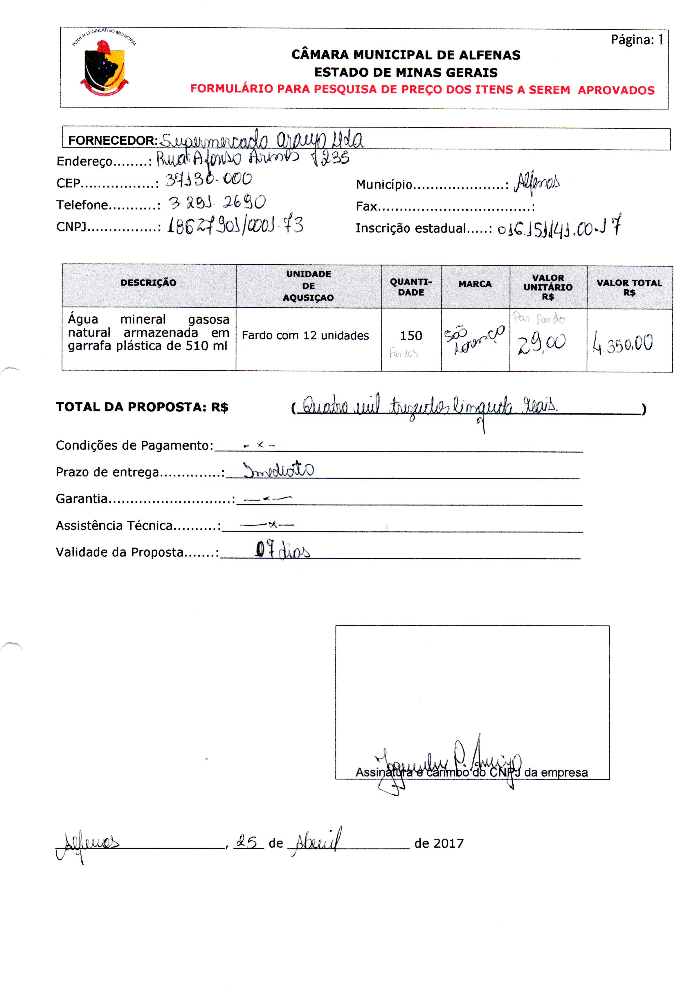 Data de abertura: 19/04/2017 | Número do Processo: 33/2017