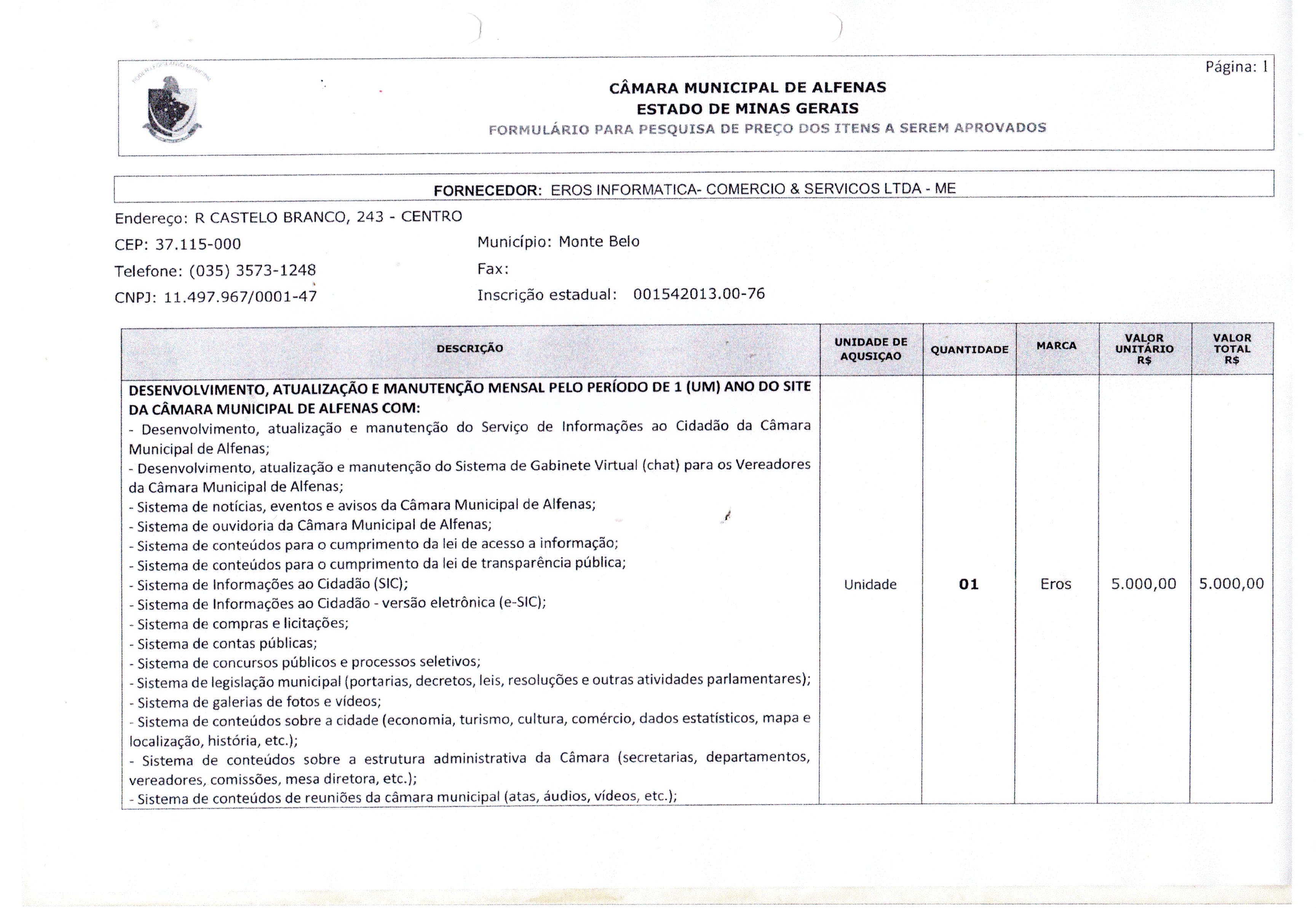 Desenvolvimento, atualização e manutenção do site da Câmara Municipal de Alfenas