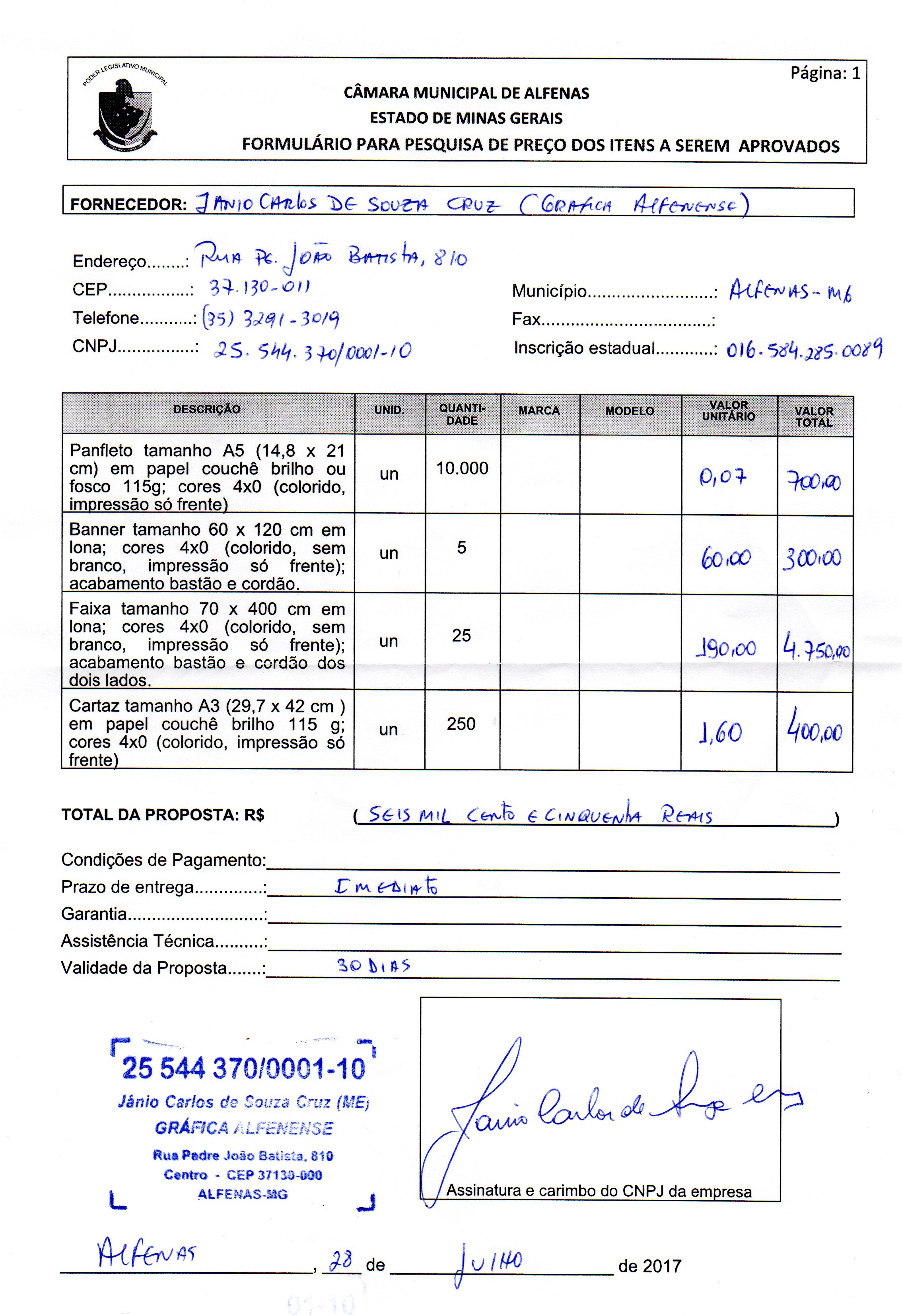 Data de abertura: 25/07/2017 | Número do Processo: 47/2017