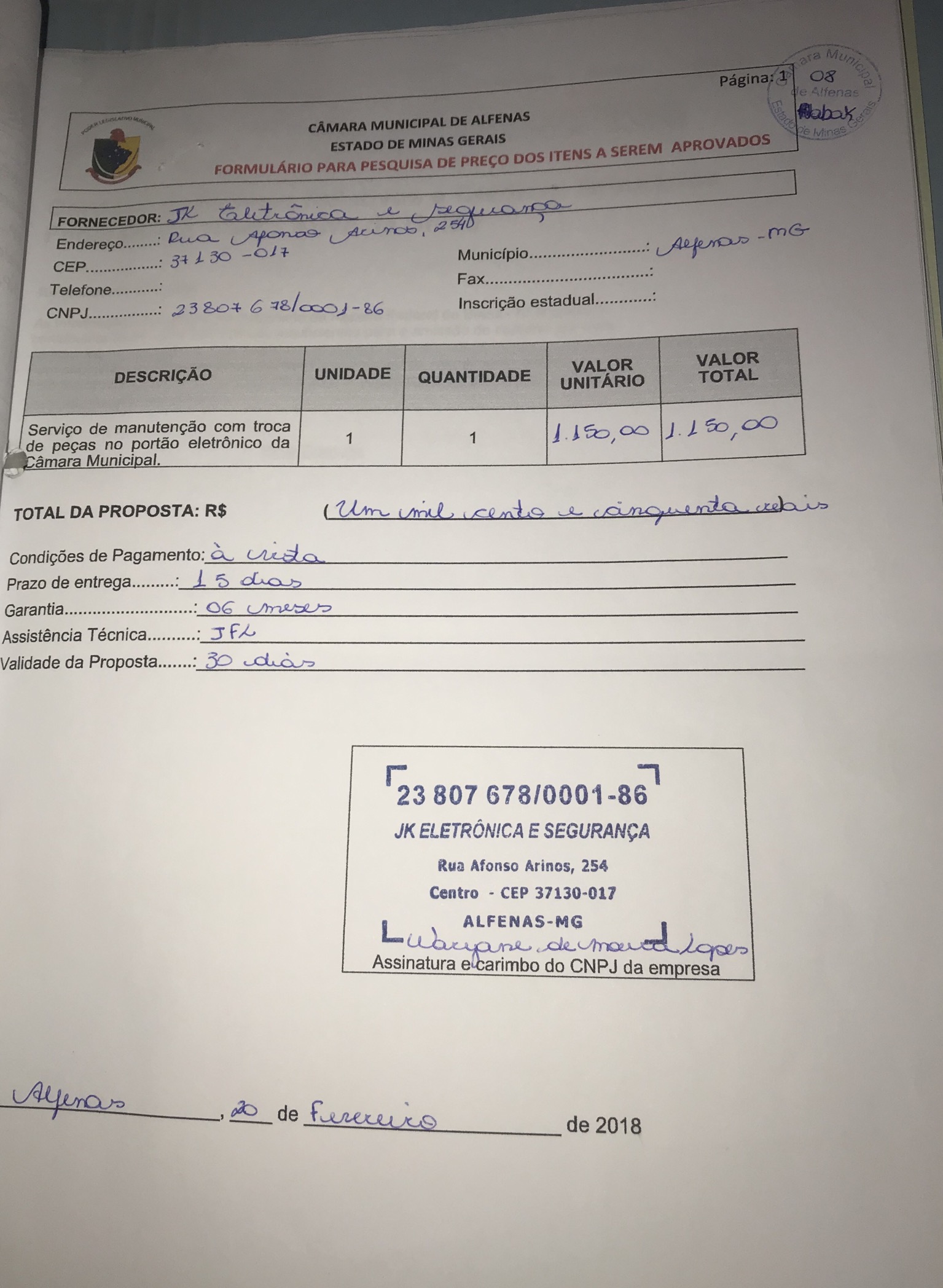 Data de abertura: 29/01/2018 | Número do Processo: 10/2018