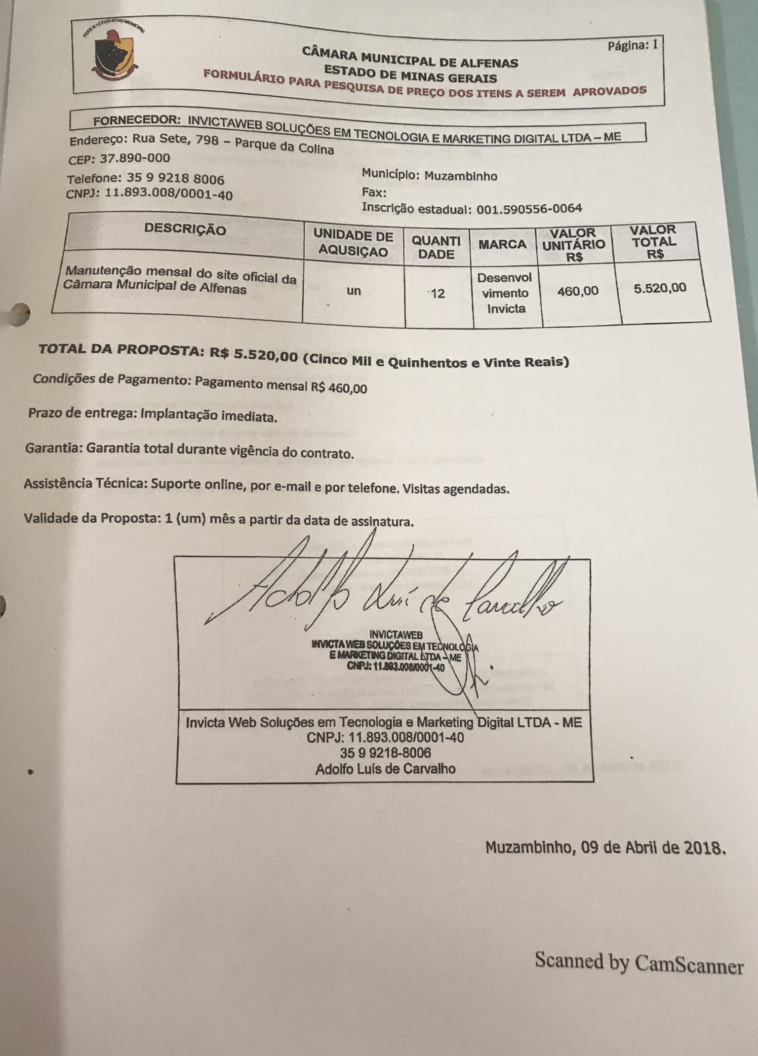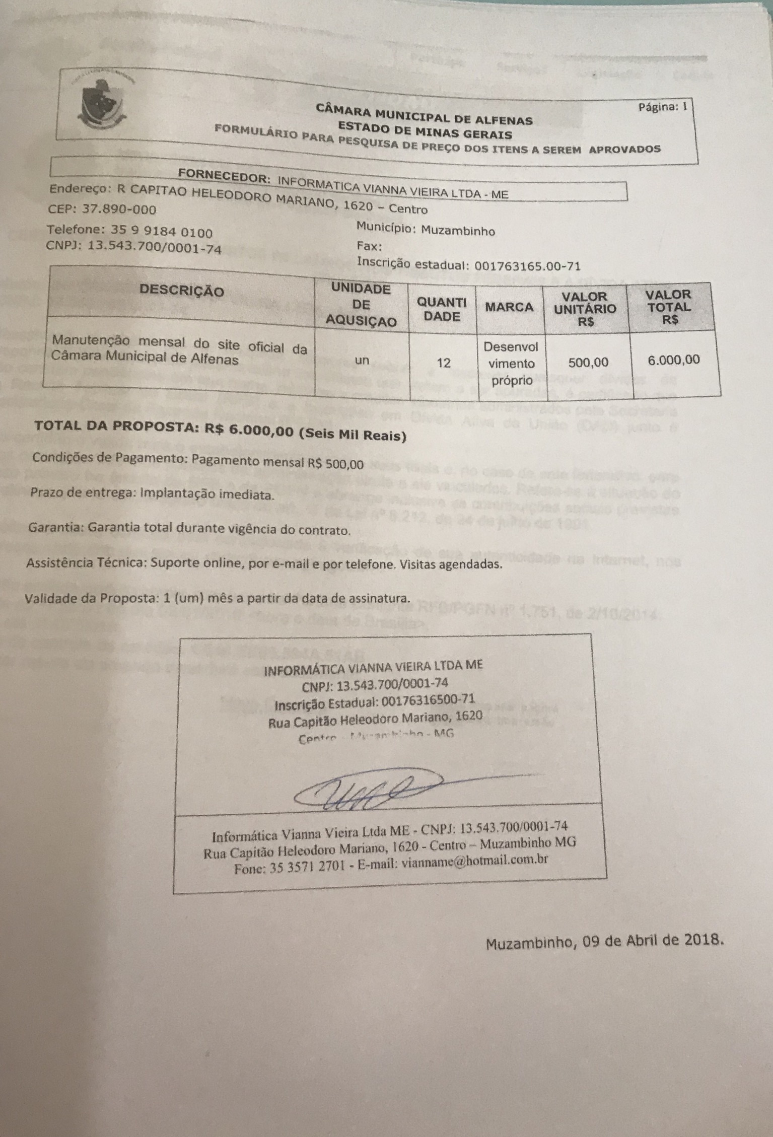Data de abertura: 09/04/2018 | Número do Processo: 23/2018